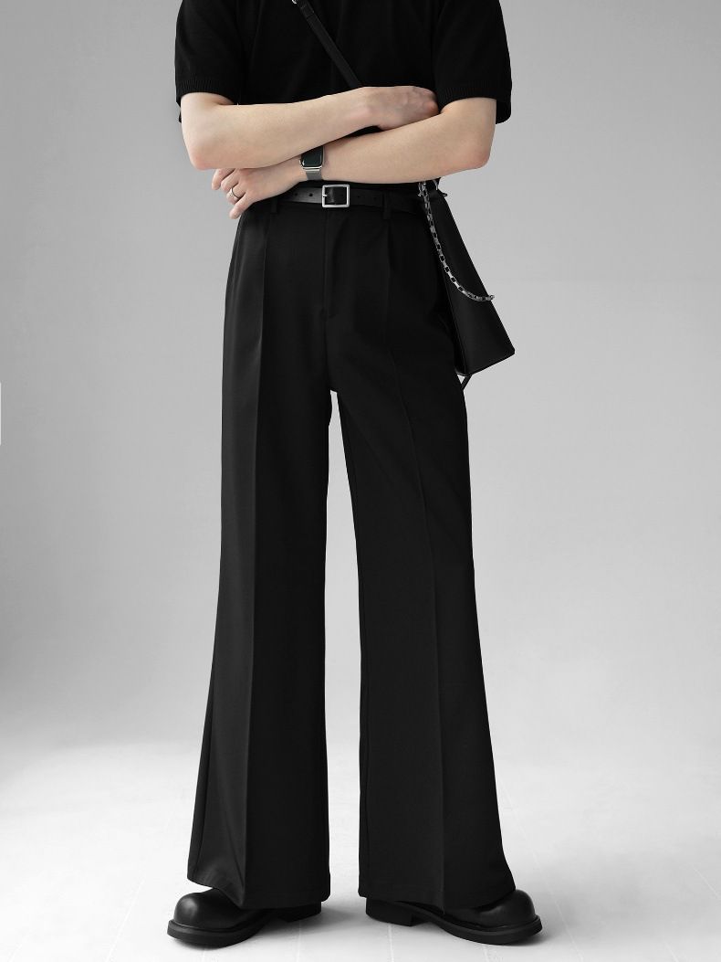 2025 새로운 봄과 가을 마이크로 혼 바지 남성용 스트레이트 튜브 느슨한 와이드 레그 캐주얼 얇은 세트 긴 바지스토어 가기