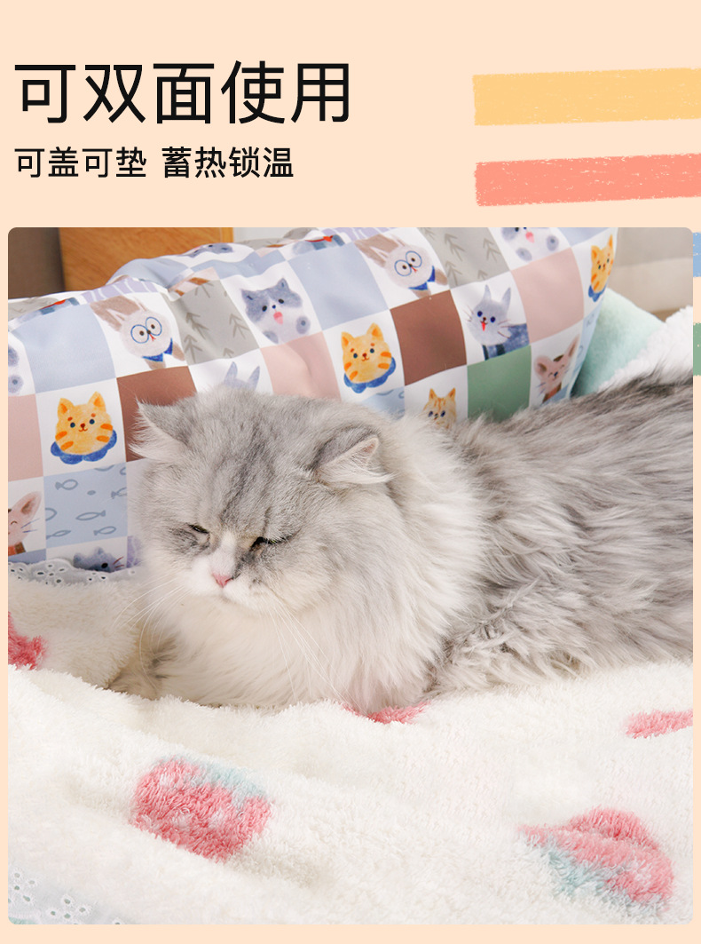 애완동물 보온 담요, 고양이 담요, 플러시 베개 세트, 작은 이불, 고양이 수면용 매트, 고양이 둥지, 두껍고 따뜻함스토어 가기