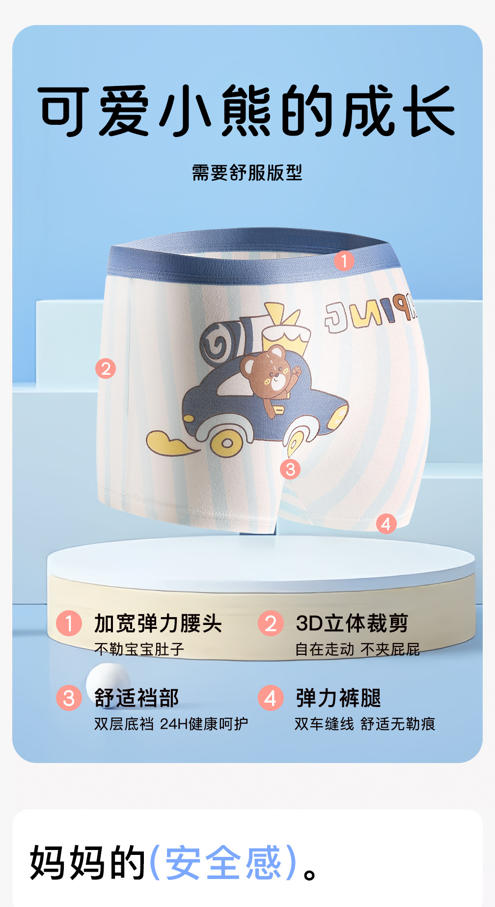 소년 속옷 클래스 순수한면 귀여운 귀여운 곰 어린이 복서 소년 중 큰 어린이 4 개 코너 바지스토어 가기