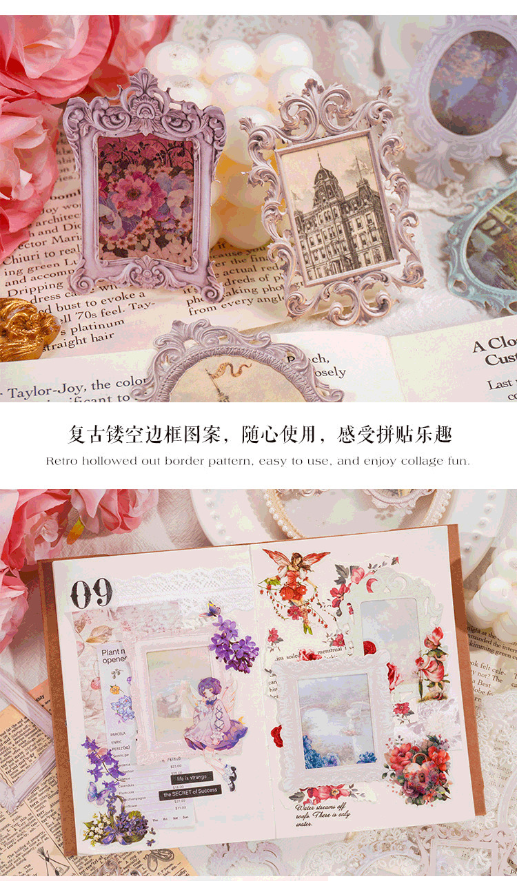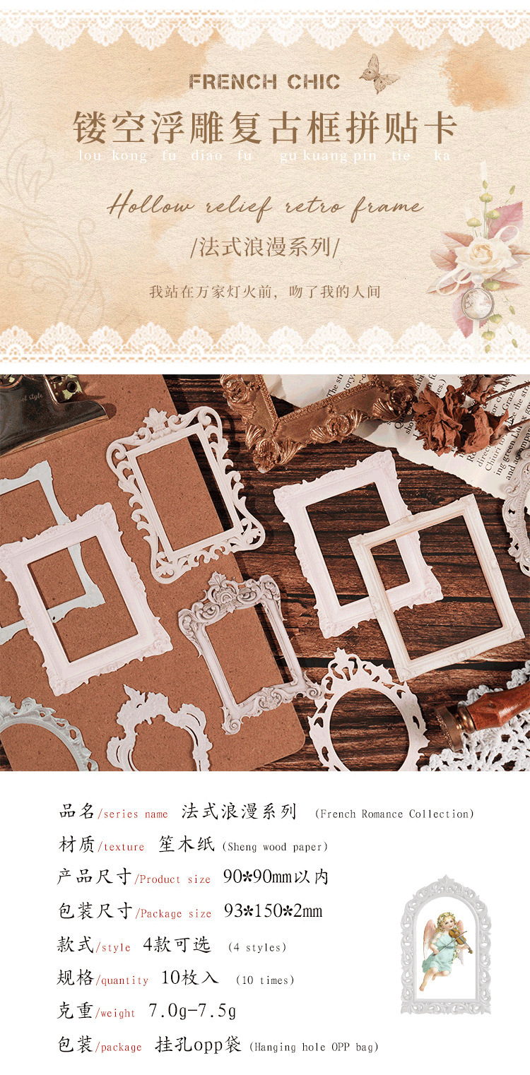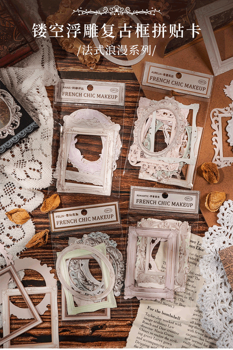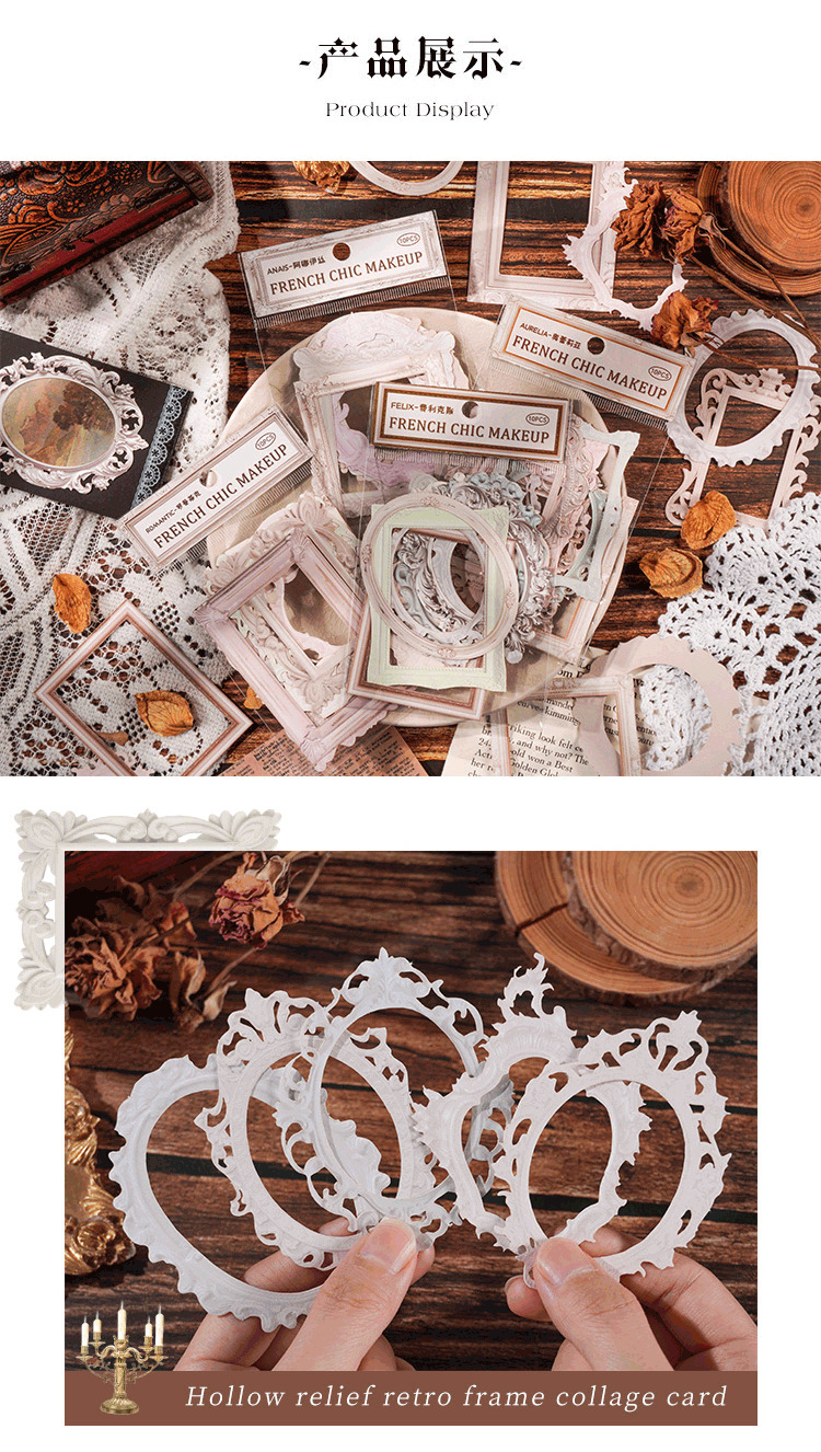 프랑스 로맨틱 릴리프 콜라주 라이트 레트로 프레임 프랑스 사진 프레임 비 스티커 손 계정 소재 손 계정 장식 제조 업체스토어 가기