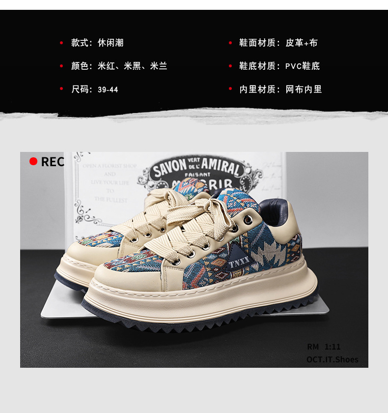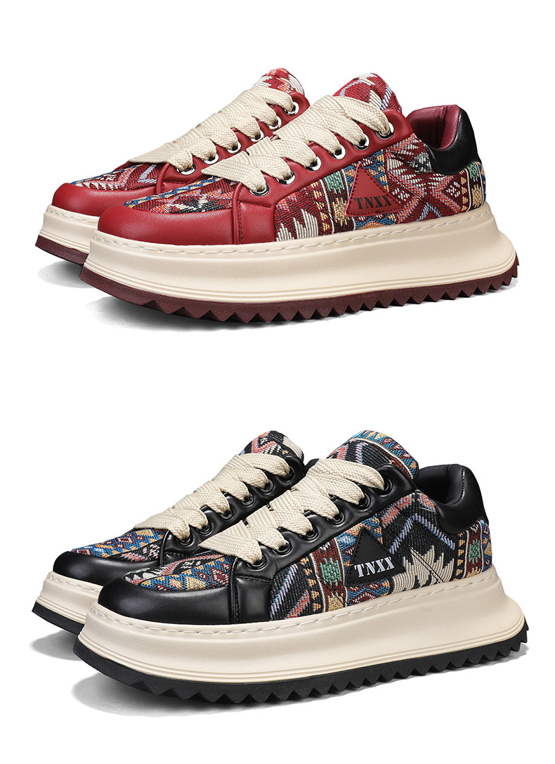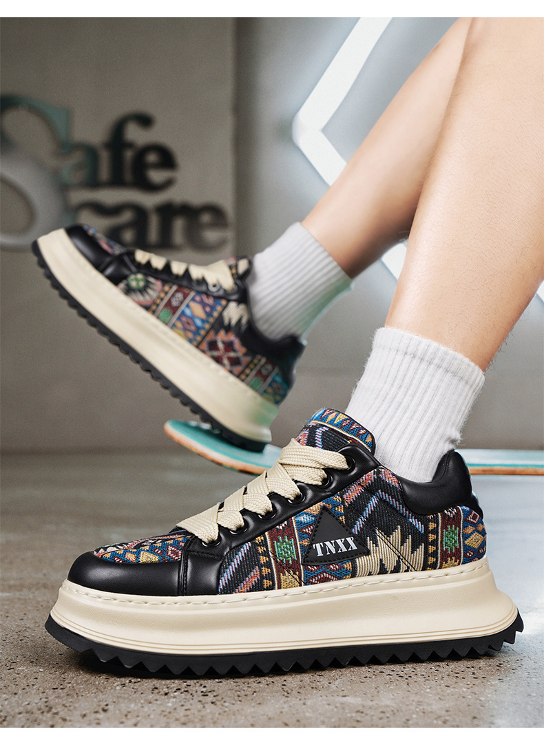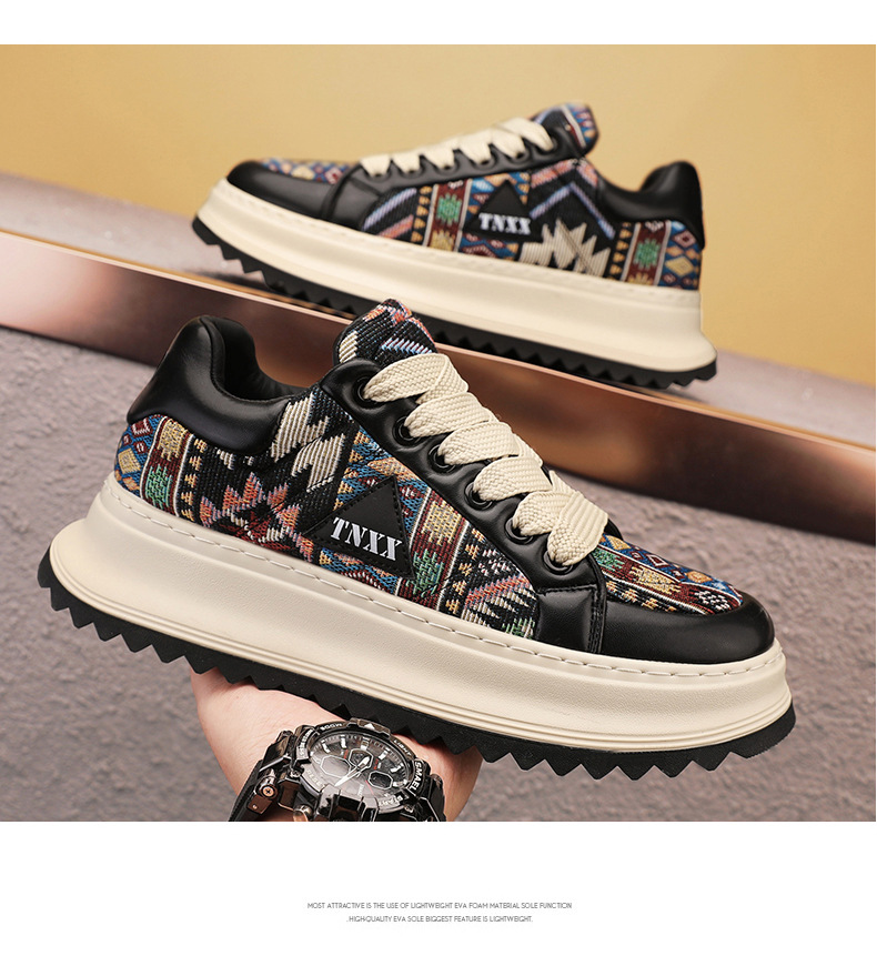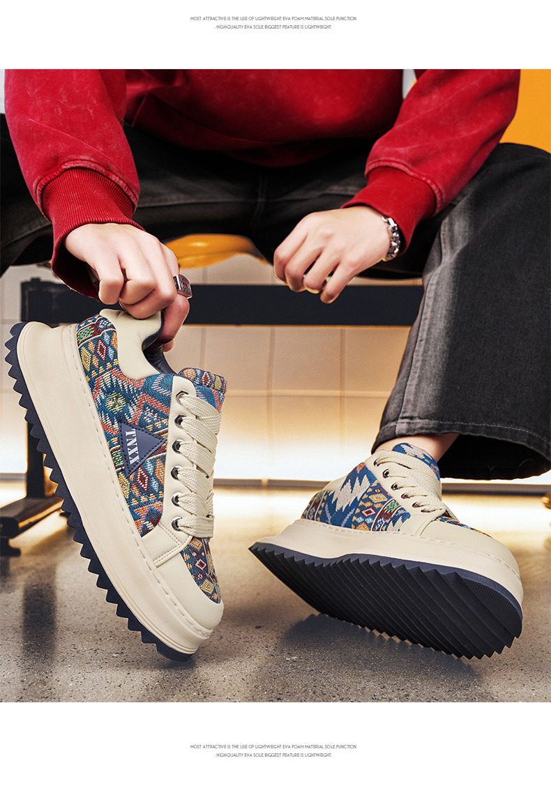 남성 신발 레트로 자수 통기성 캔버스 신발 2025 봄 새로운 도착 유행 남성 플랫폼 높이 증가 모든 경기 캐주얼 스니커스토어 가기