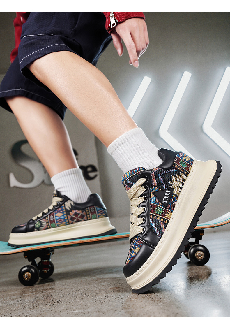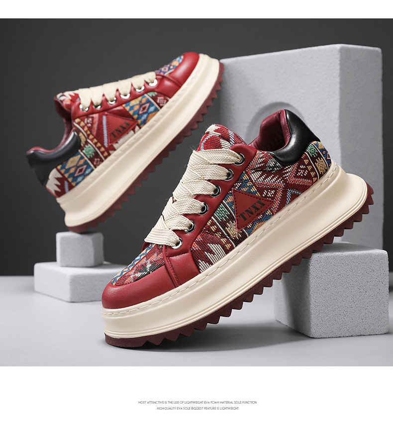 남성 신발 레트로 자수 통기성 캔버스 신발 2025 봄 새로운 도착 유행 남성 플랫폼 높이 증가 모든 경기 캐주얼 스니커