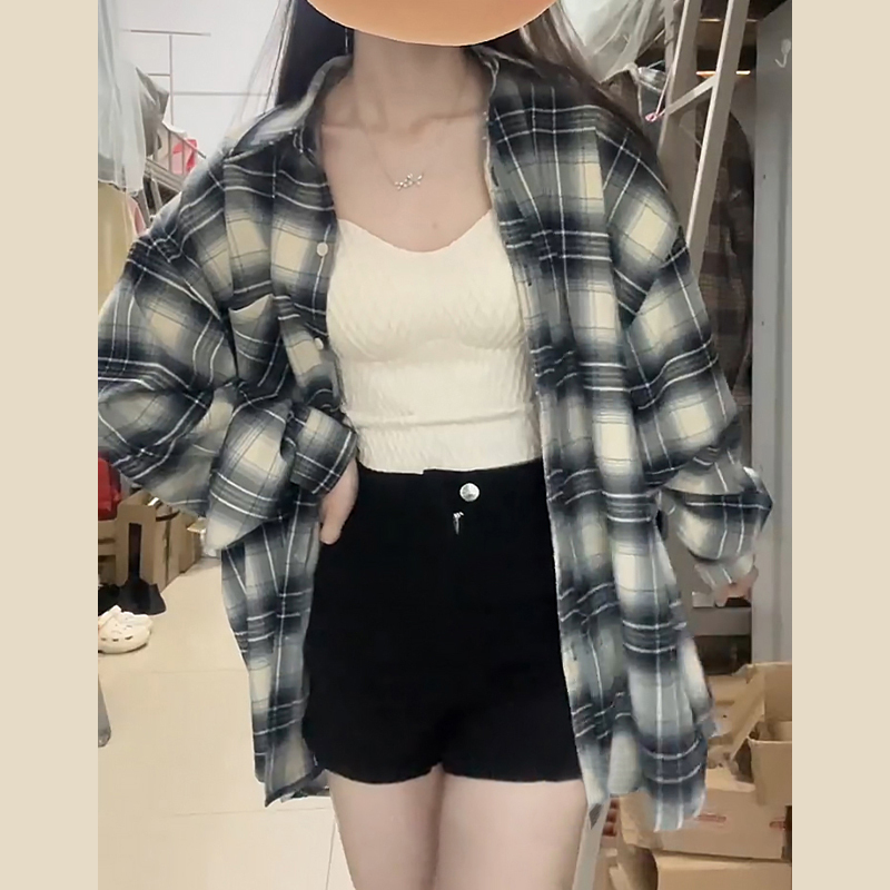 격자 무늬 셔츠 코트 여성의 봄과 가을 2025 새로운 프랑스 디자인 센스 긴 소매 셔츠 외부 느슨한 탑스토어 가기