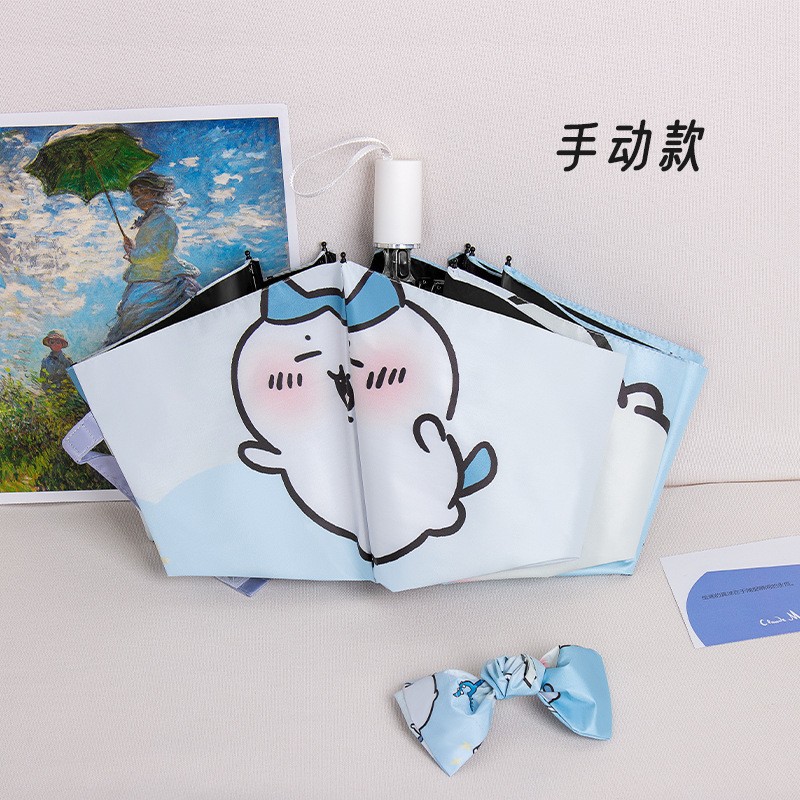 Jiyika 와우 작은 8 귀여운 맑고 비오는 이중 목적 자동 우산 접이식 차양 우산 자외선 차단제 검은 고무 태양 우산