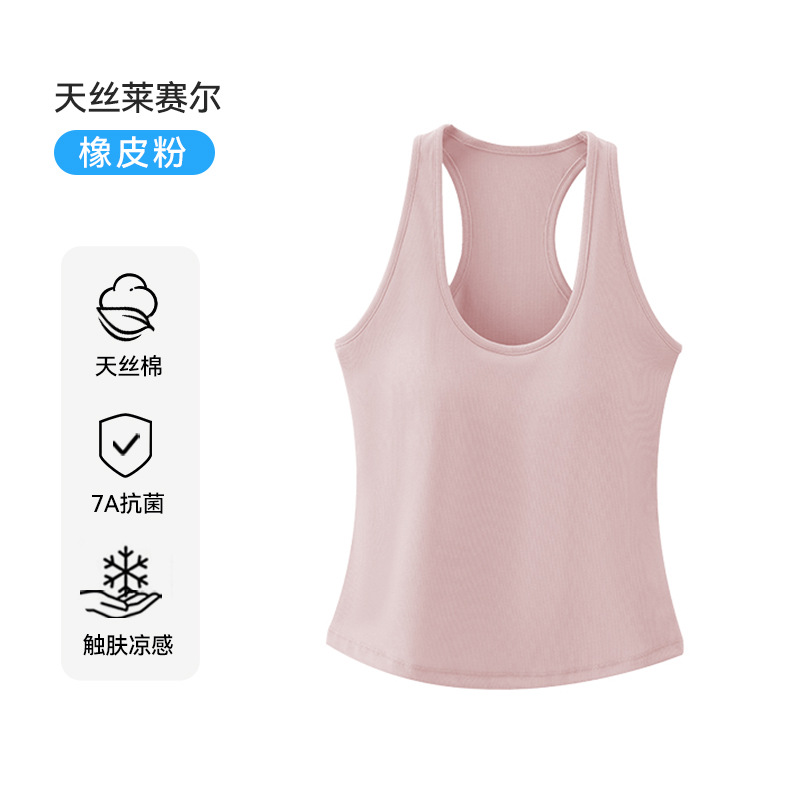 [7A 항균 리오셀] 가슴 패드가 있는 시원한 느낌의 여성용 가슴 커버 캐미솔, 활용도 높은 홀터넥, 아름다운 등 탑