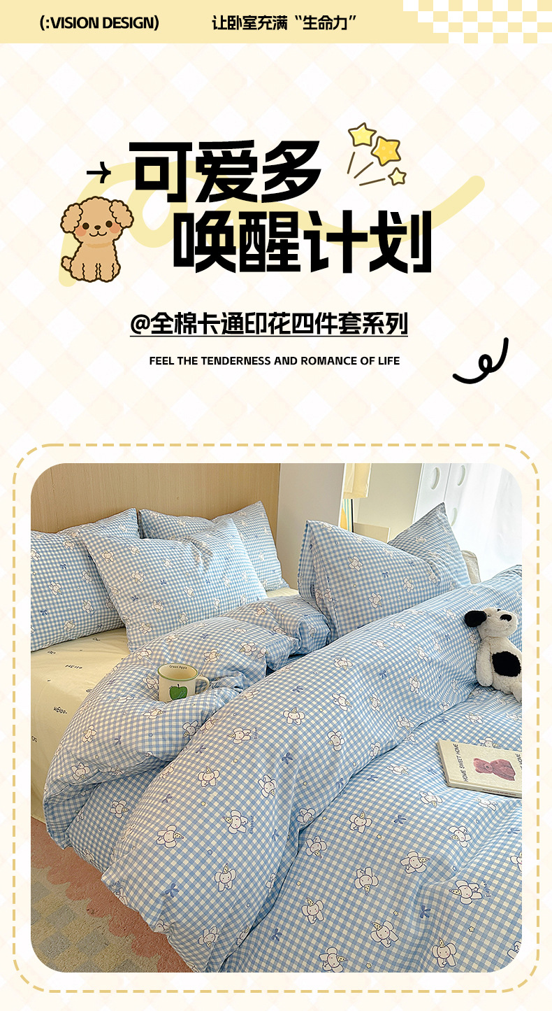 작은 신선한면 이불 커버 싱글 피스 100 면 만화 퀼트 150x200x230 어린이 기숙사 이불 커버스토어 가기