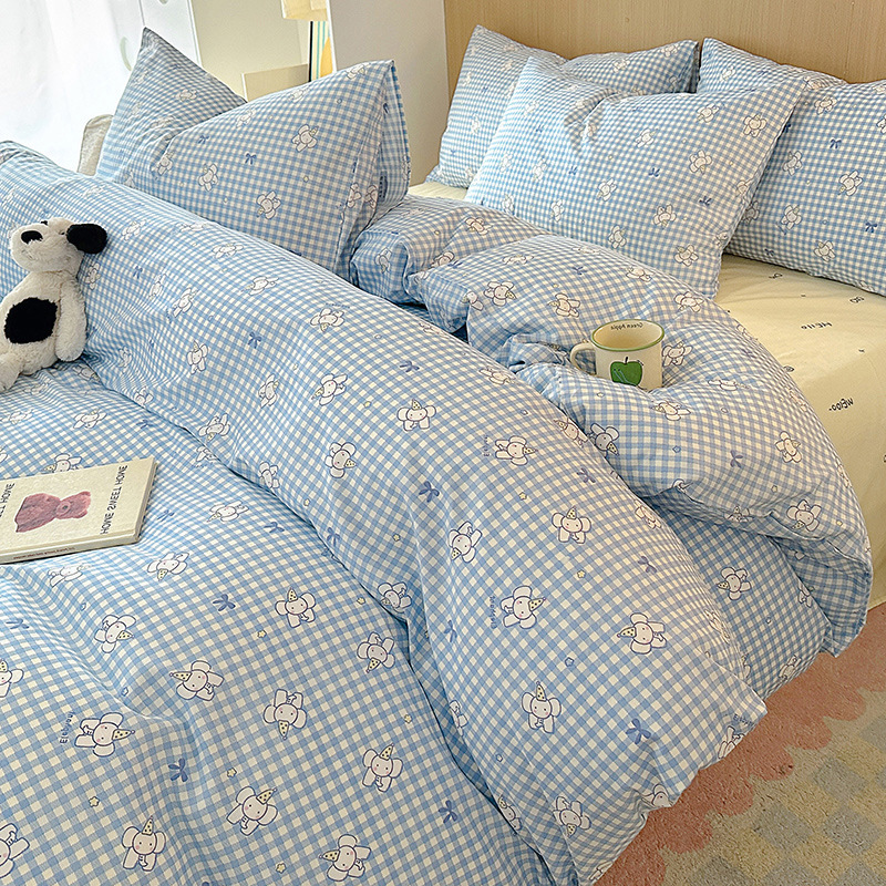 • 블루 체크 코끼리 [피부 친화적인 면 소재로 편안하고 통기성이 좋음]