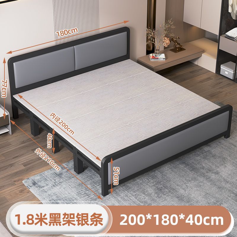 4 배 접이식 침대 더블 침대 가정용 간단한 나무 침대 아이언 침대 싱글 침대 렌탈 룸 플레이트 침대 점심 휴식 침대 철공 침대스토어 가기