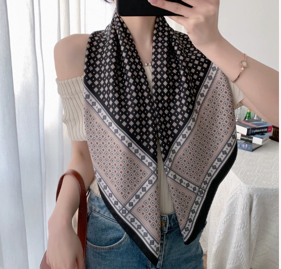 새로운 패션 브랜드 인쇄 90 스퀘어 스카프 피부 친화적 인 실키 트윌 실크 헤드 스카프 여성 장식 올 매치 실크 스카프