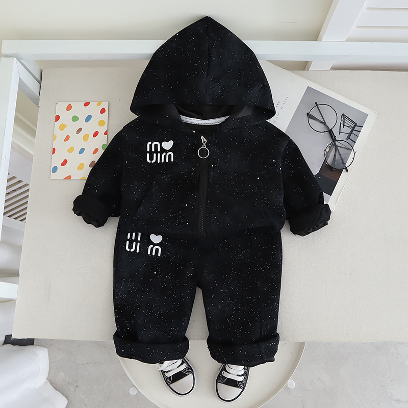 국경 간 소녀 스포츠 세트 봄 2025 새로운 서양식 어린이 후드 카디건 탑 와이드 레그 바지 투피스 세트스토어 가기