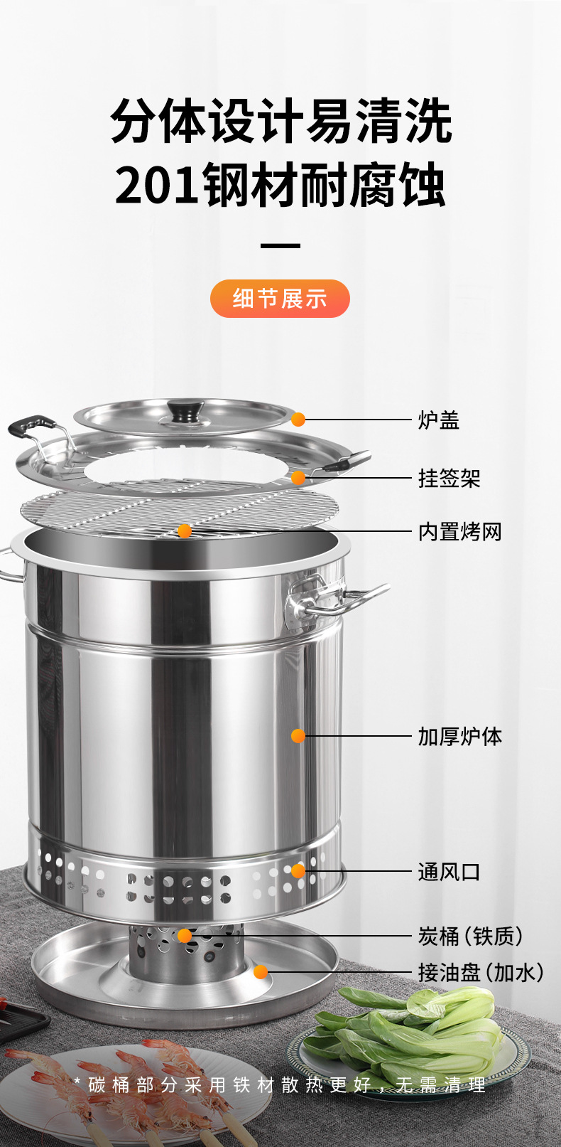 무연 BBQ 스토브 홈 교수형 스토브 야외 휴대용 오븐 숯 그릴 스테인레스 스틸 실내 탄소 오븐