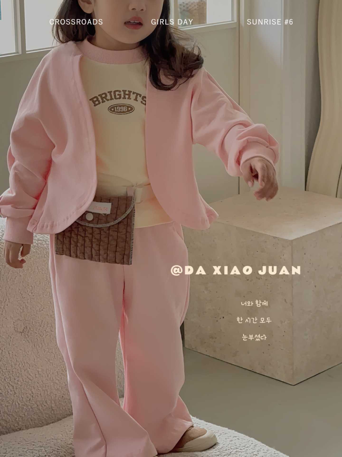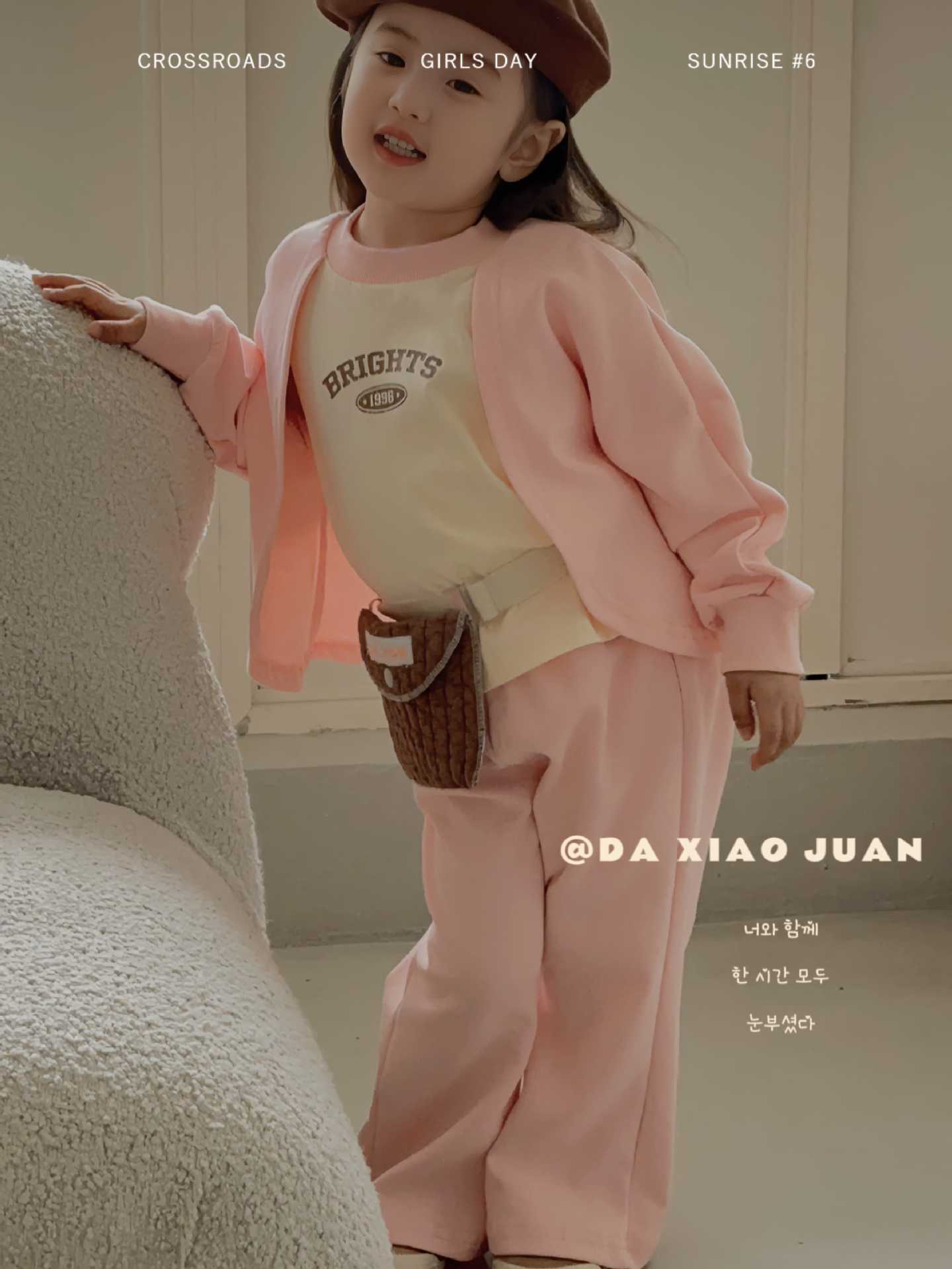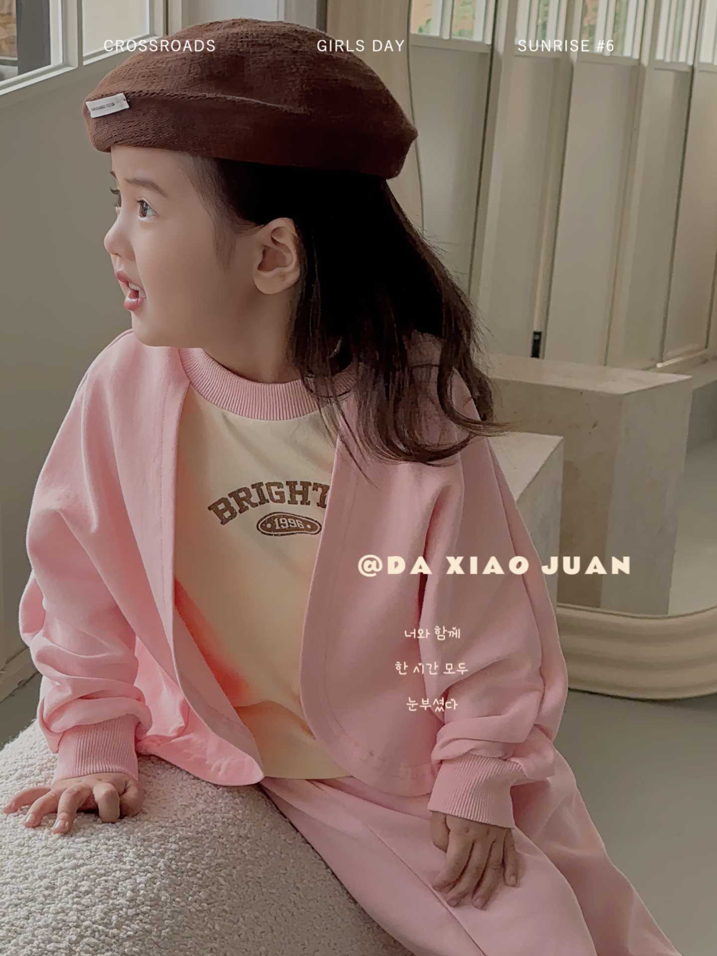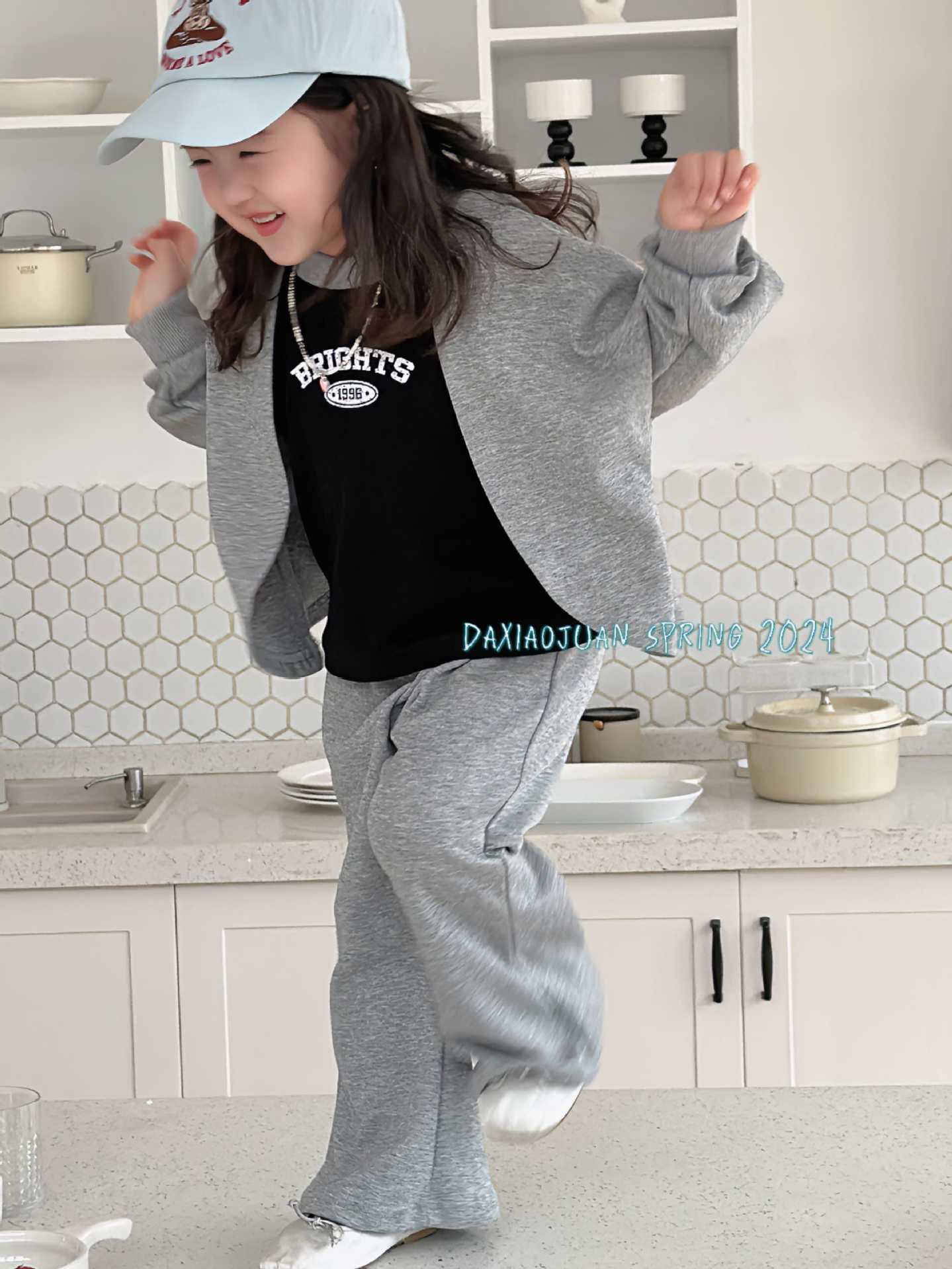 작고 큰 롤 소녀 스웨터 세트 어린이 가을 한국 스타일 소녀 컬러 매칭 탑 플레어 바지 투피스 세트스토어 가기