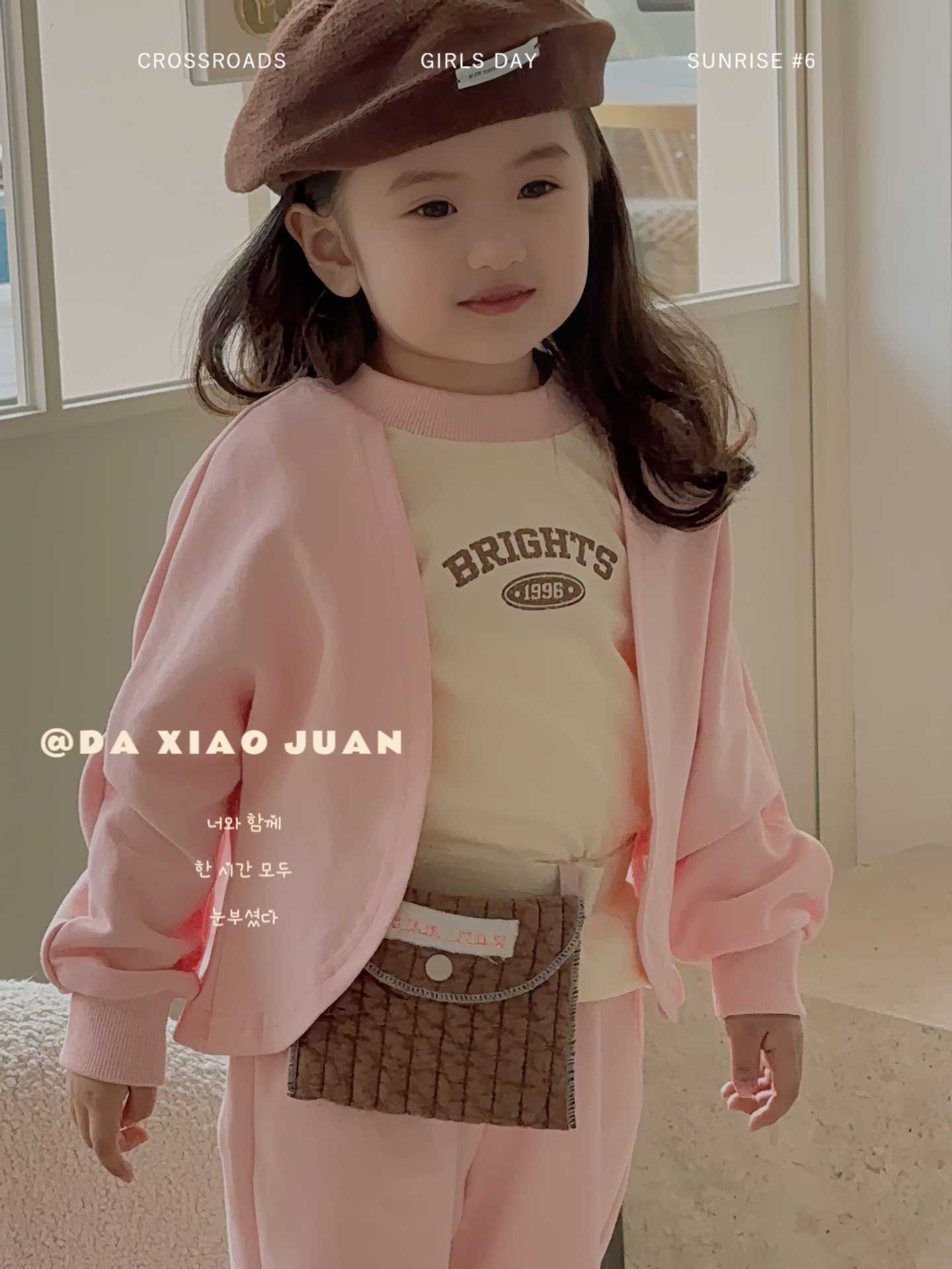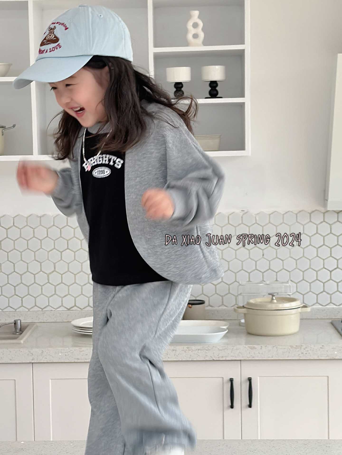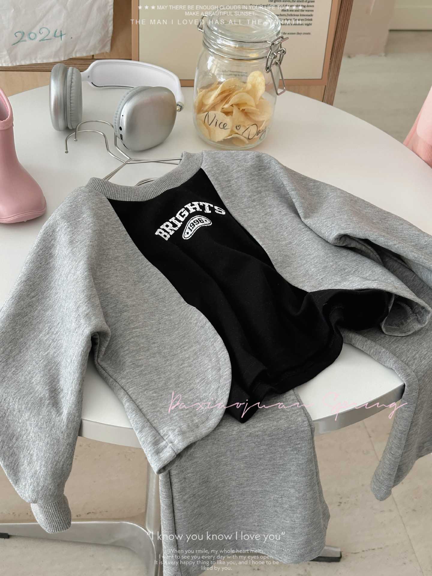 작고 큰 롤 소녀 스웨터 세트 어린이 가을 한국 스타일 소녀 컬러 매칭 탑 플레어 바지 투피스 세트스토어 가기