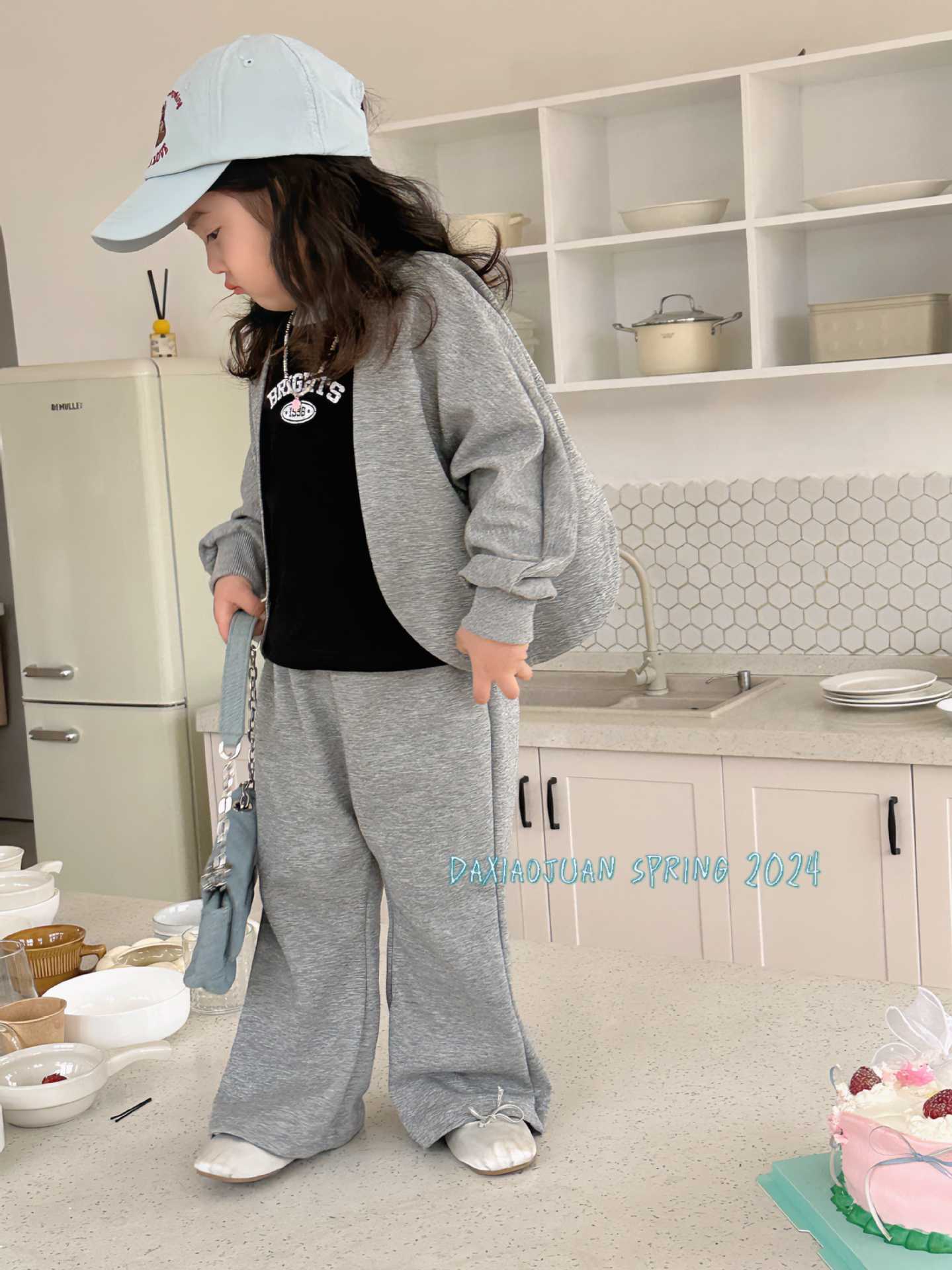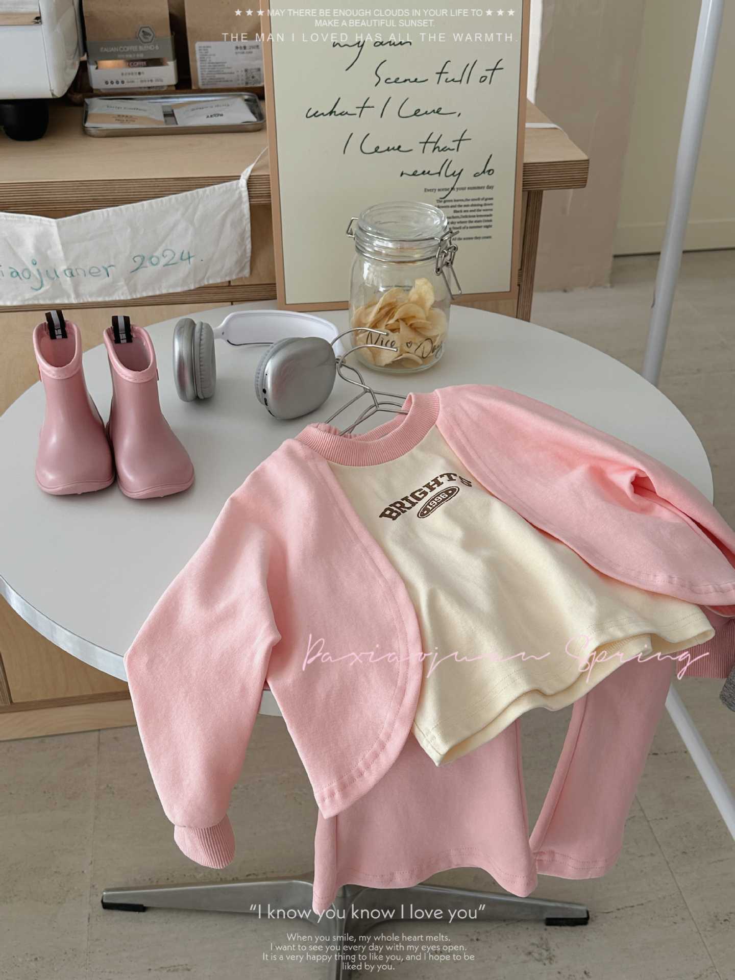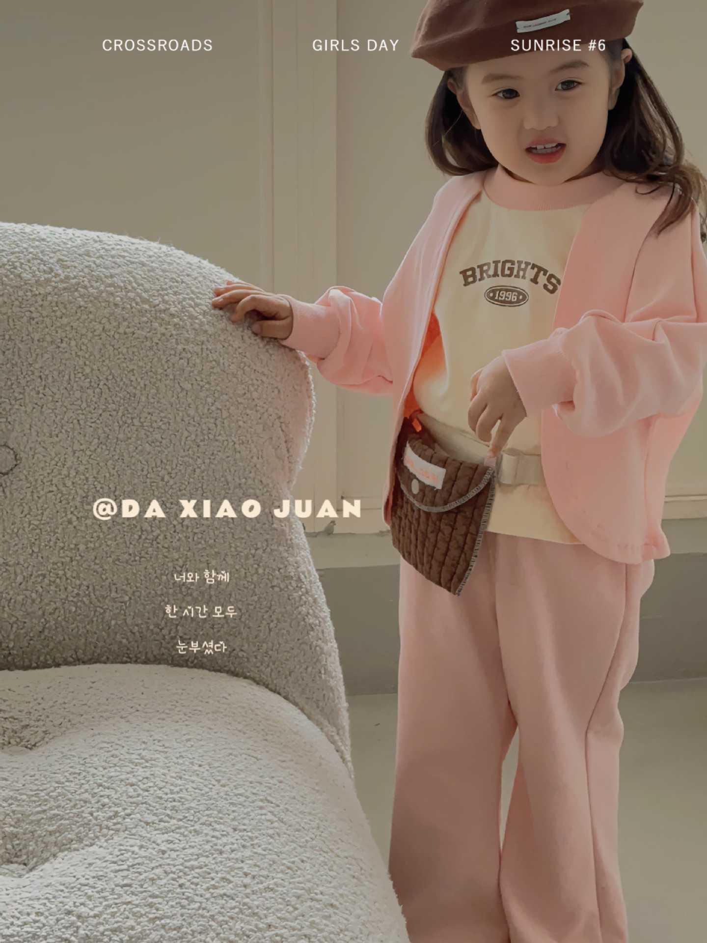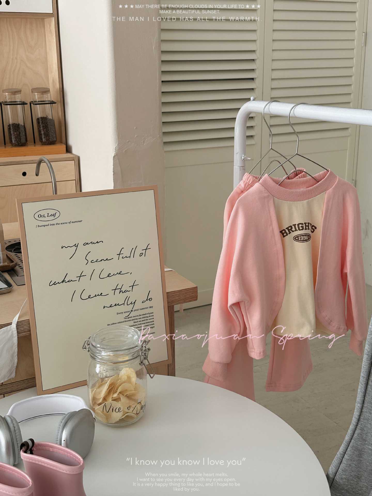 작고 큰 롤 소녀 스웨터 세트 어린이 가을 한국 스타일 소녀 컬러 매칭 탑 플레어 바지 투피스 세트스토어 가기