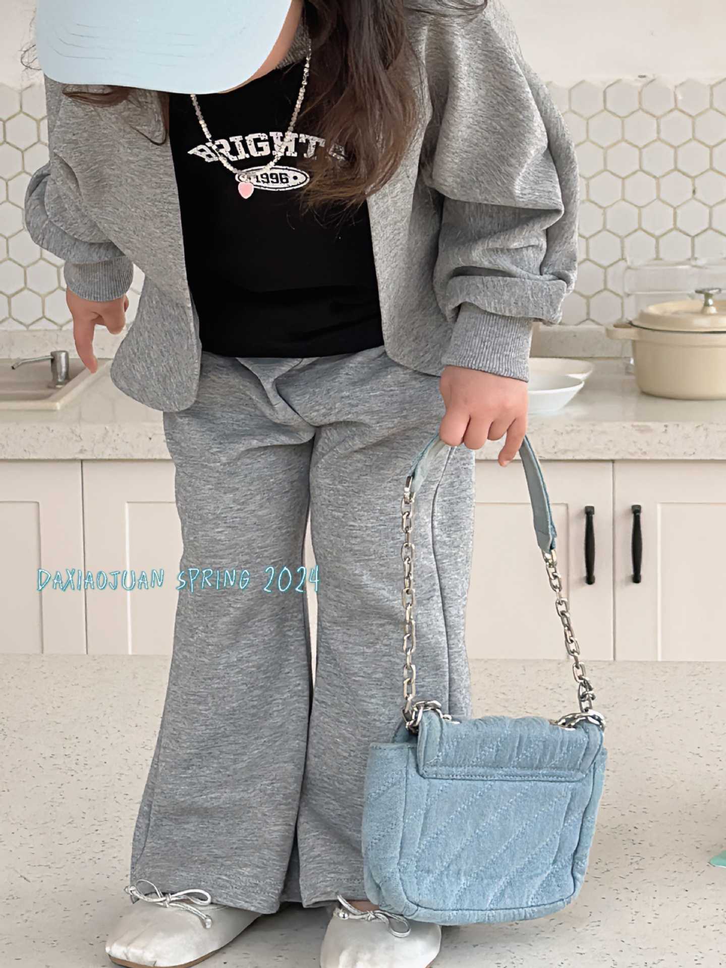 작고 큰 롤 소녀 스웨터 세트 어린이 가을 한국 스타일 소녀 컬러 매칭 탑 플레어 바지 투피스 세트