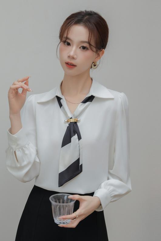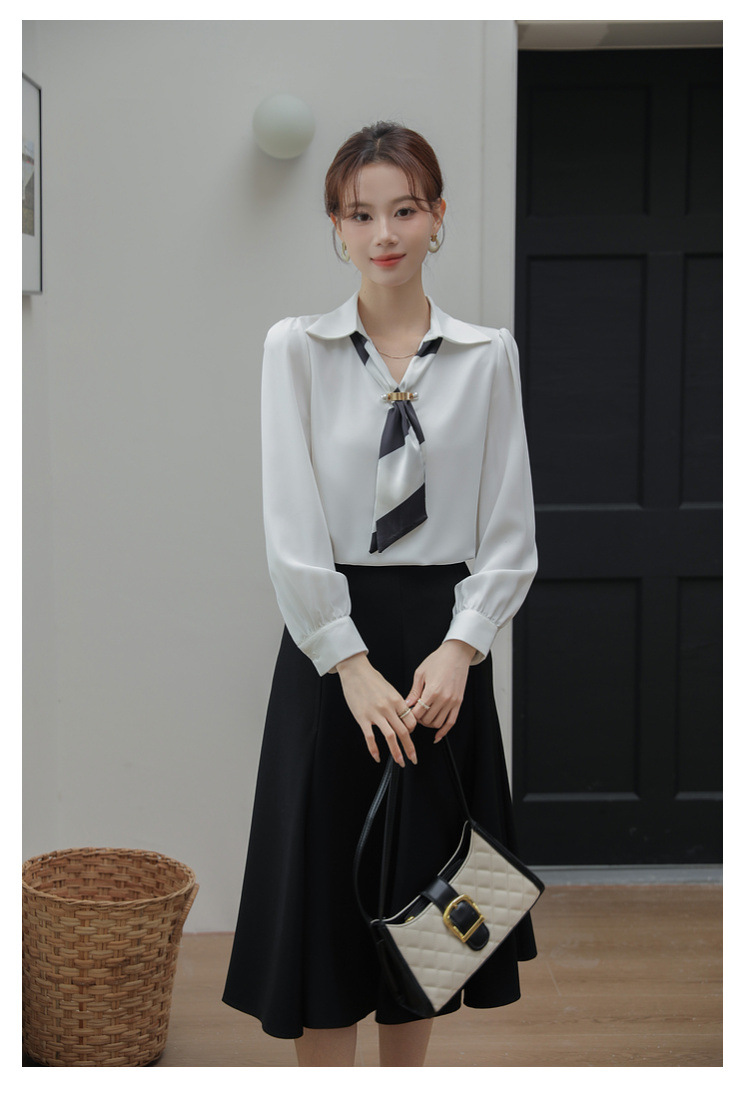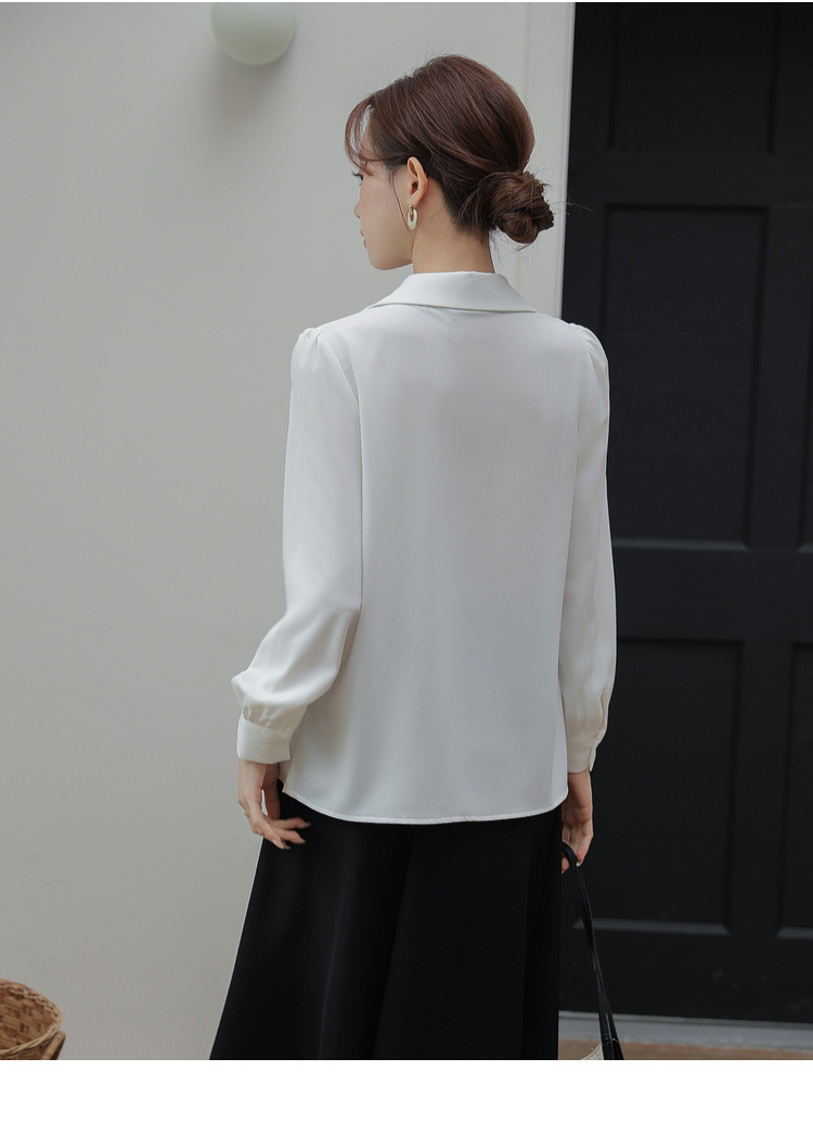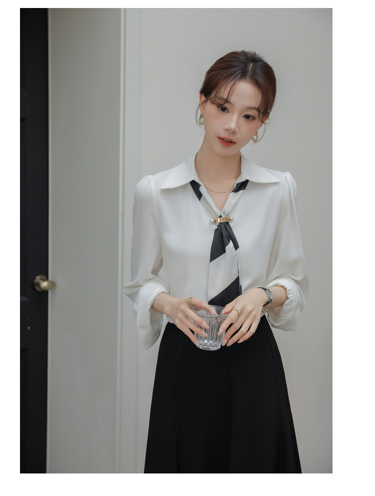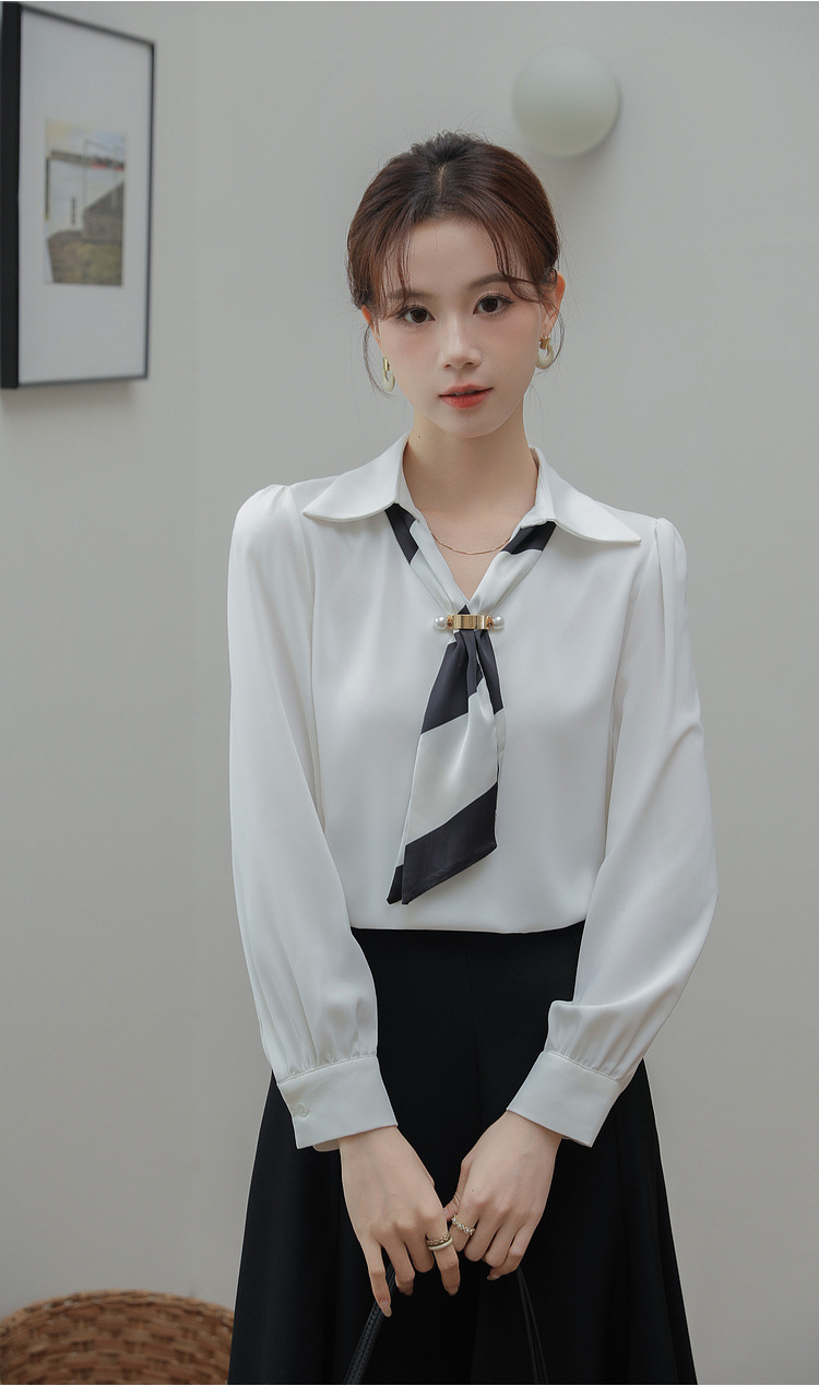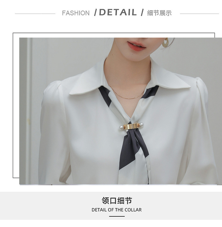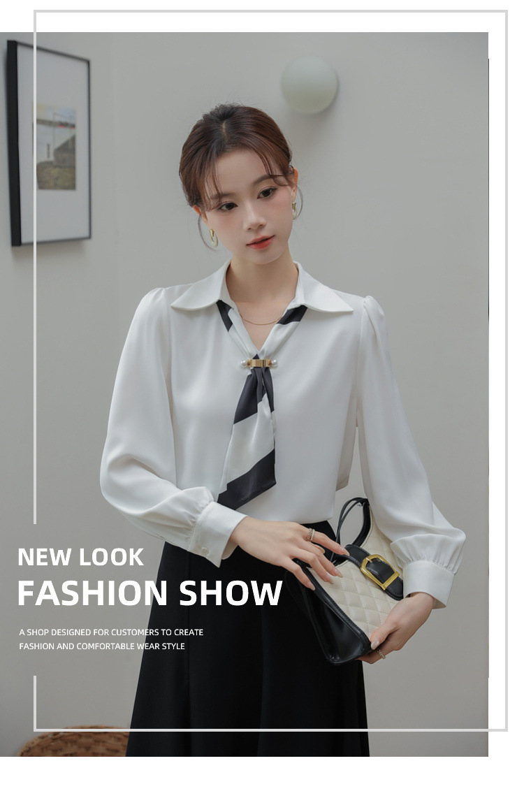 화이트 셔츠 여성의 2025 새로운 가을 V-넥 커리어 통근 인터뷰 스트랩 프랑스 유행 우아한 여성 셔츠스토어 가기
