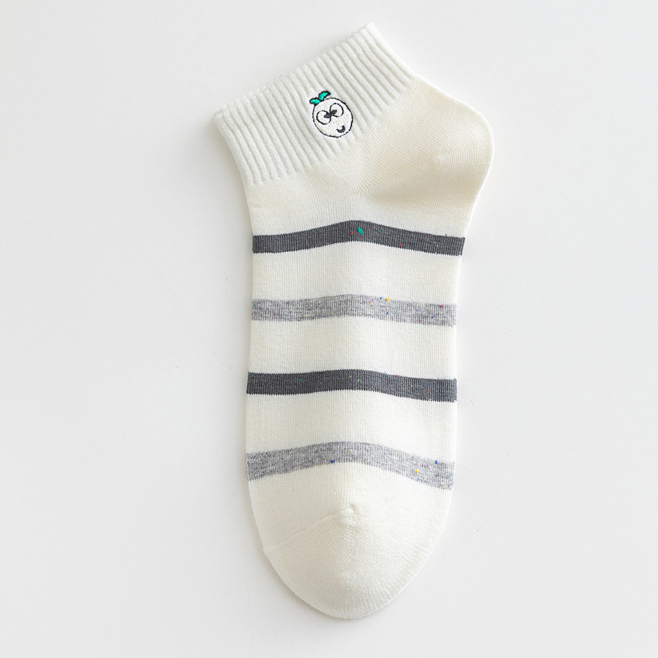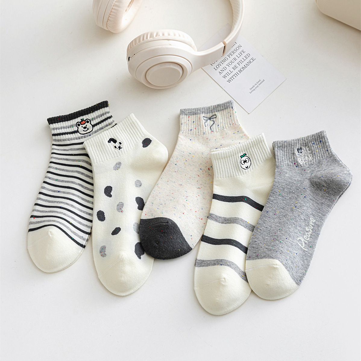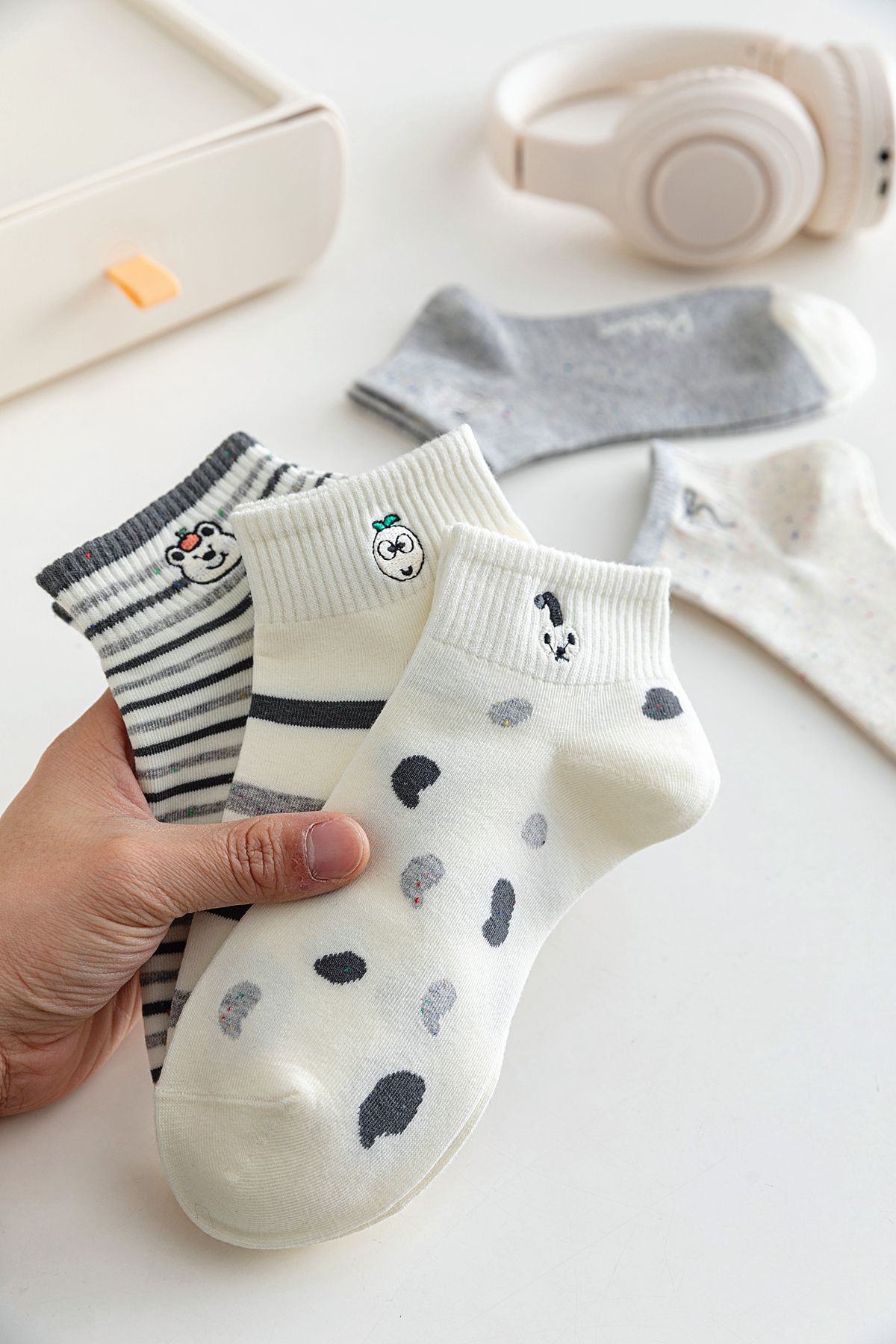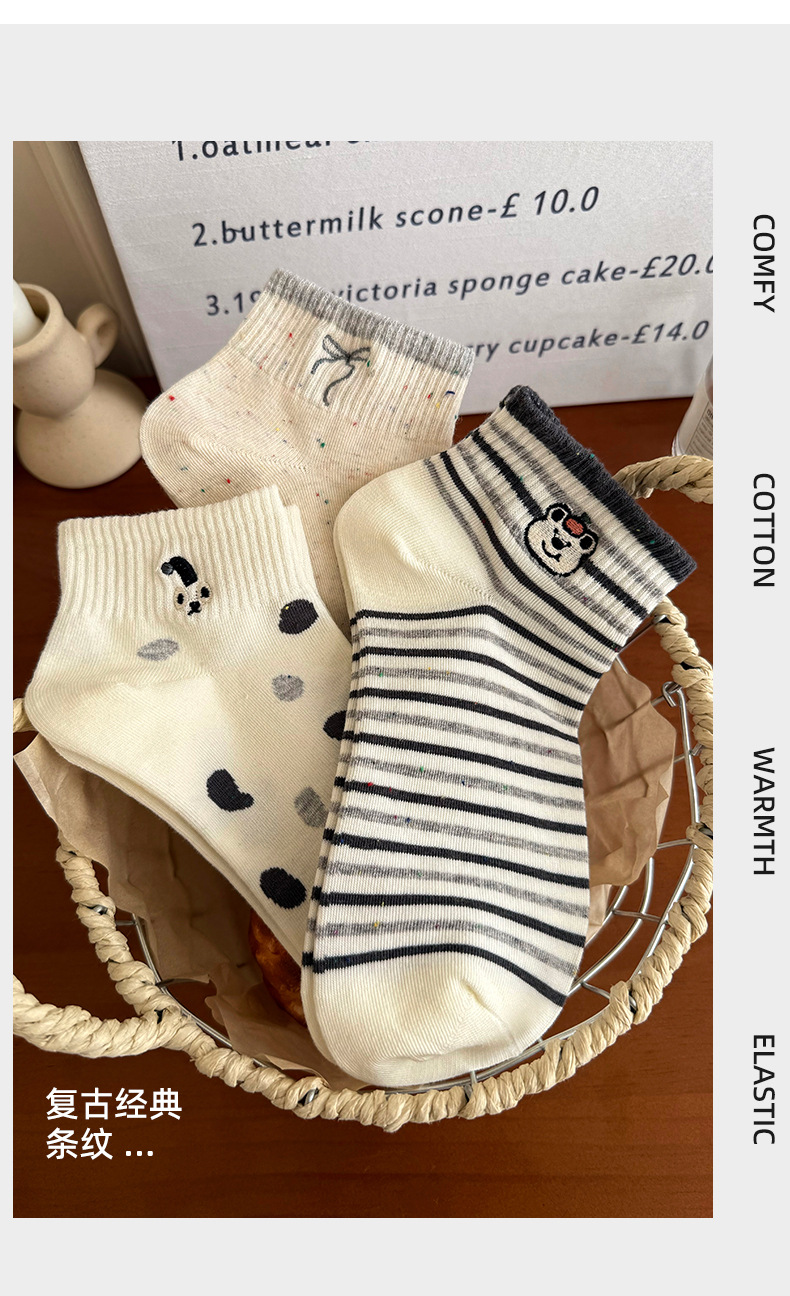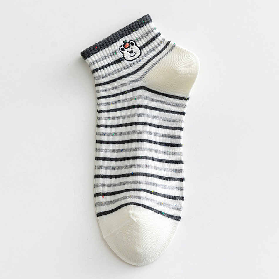 봄과 여름 새로운 일본 만화 자수 양말 강아지 컬 여자 짧은 양말 달콤한 스트라이프 올 매치 코튼 양말
