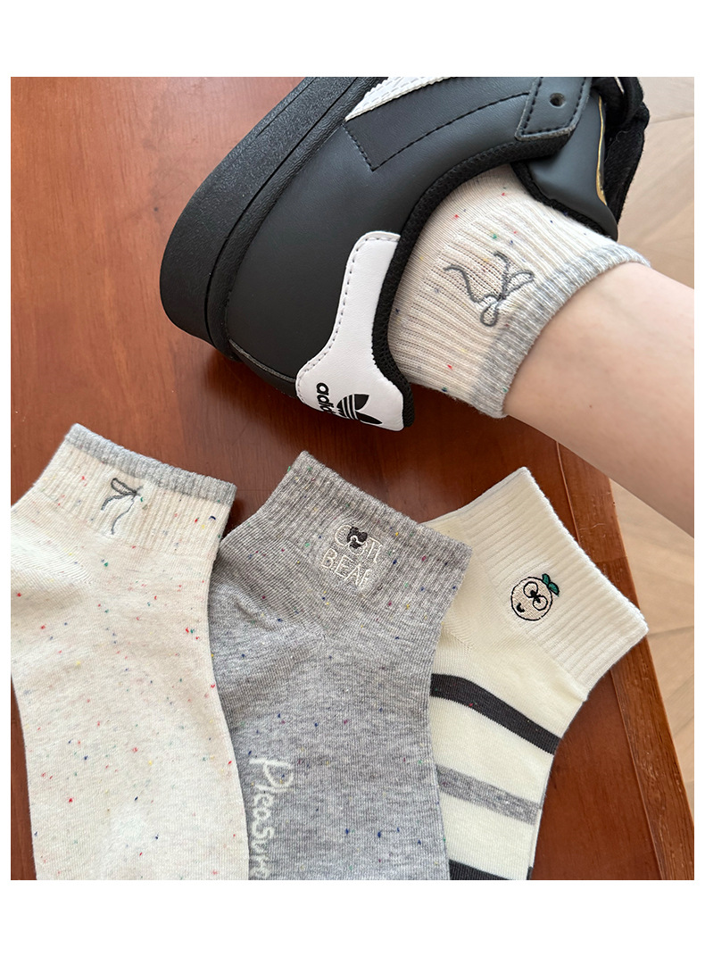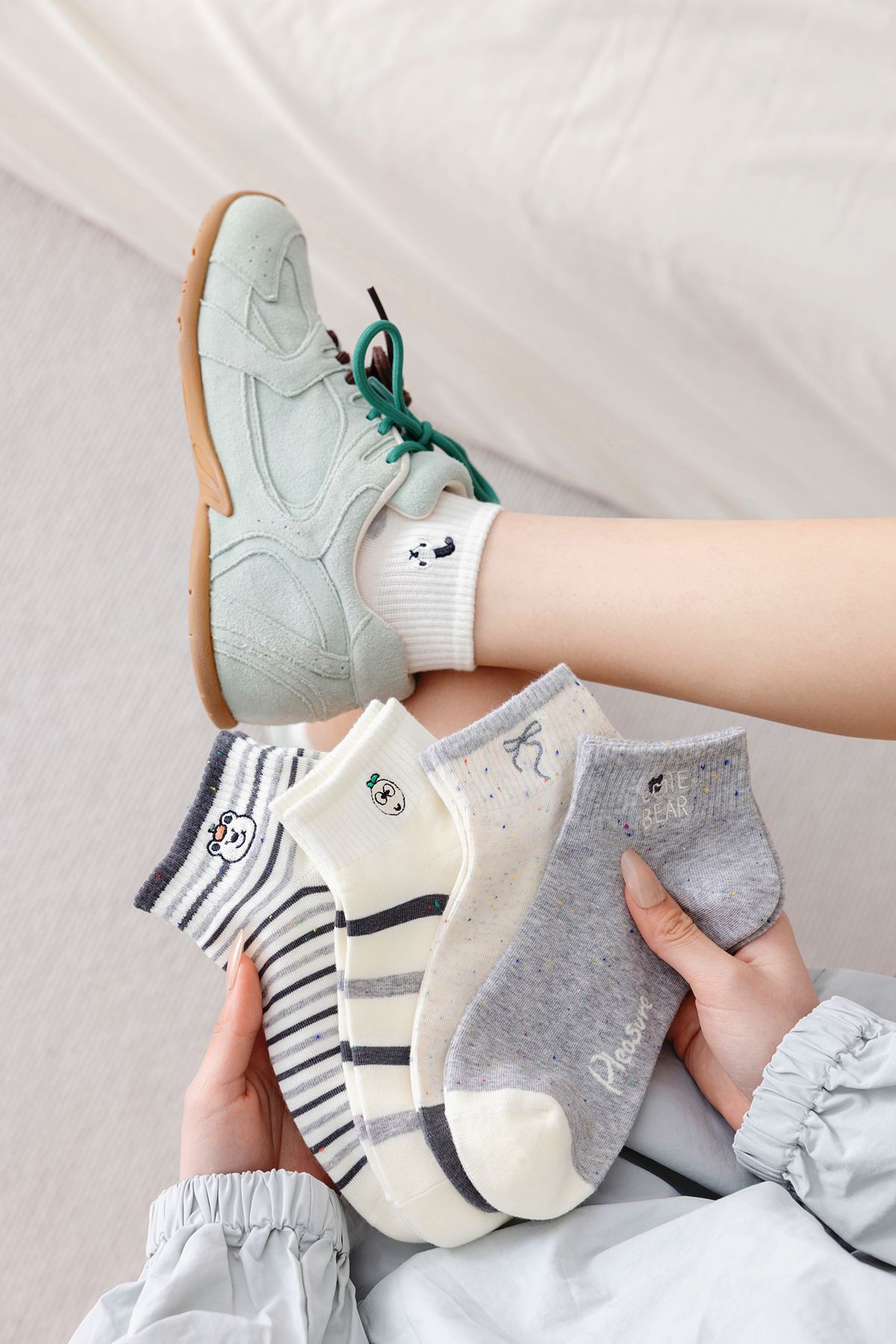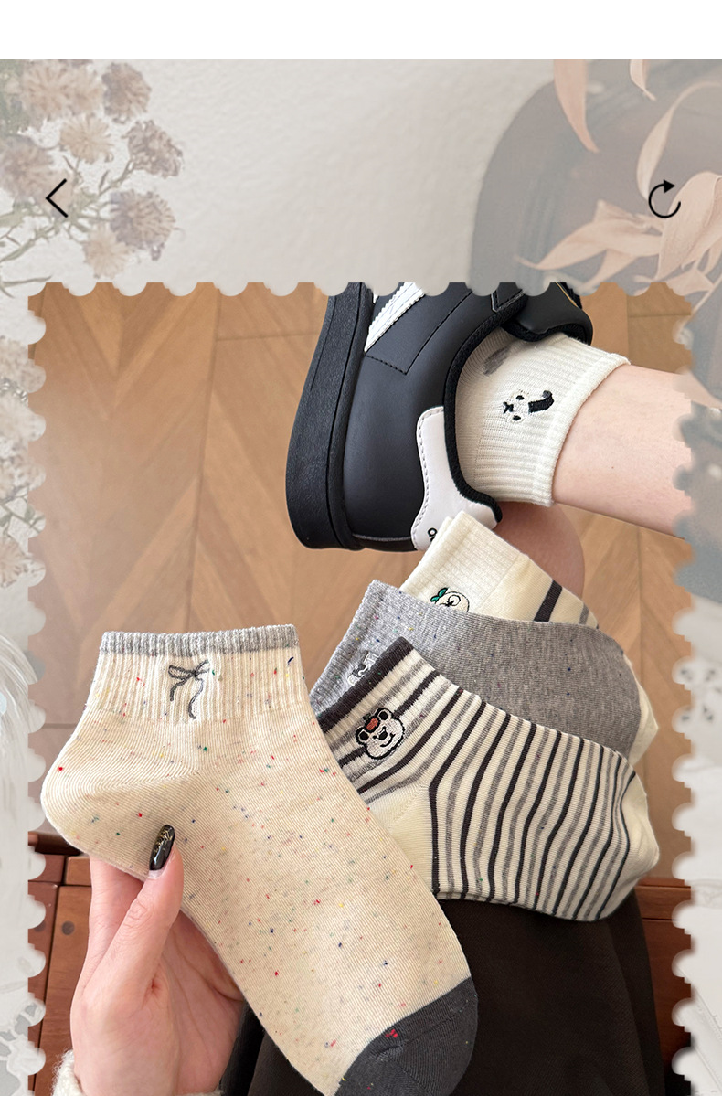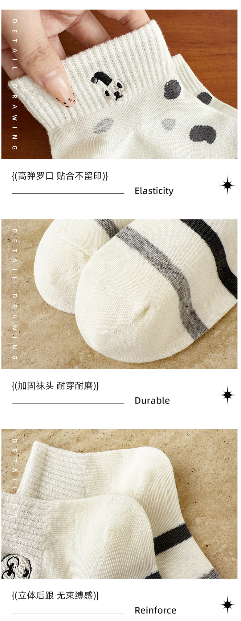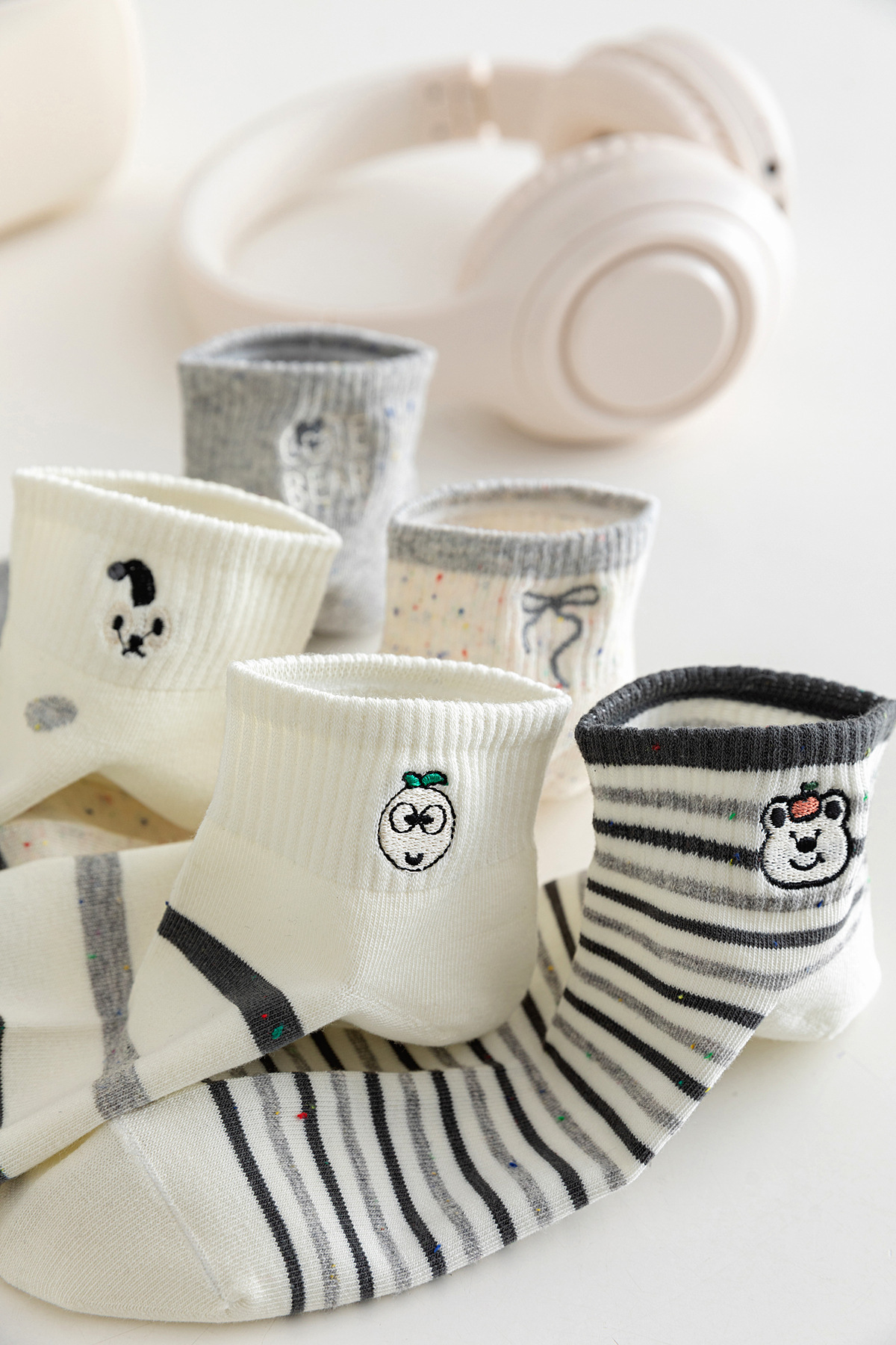 봄과 여름 새로운 일본 만화 자수 양말 강아지 컬 여자 짧은 양말 달콤한 스트라이프 올 매치 코튼 양말