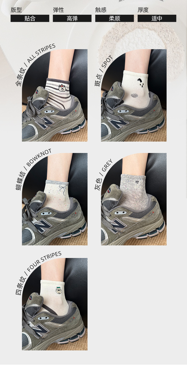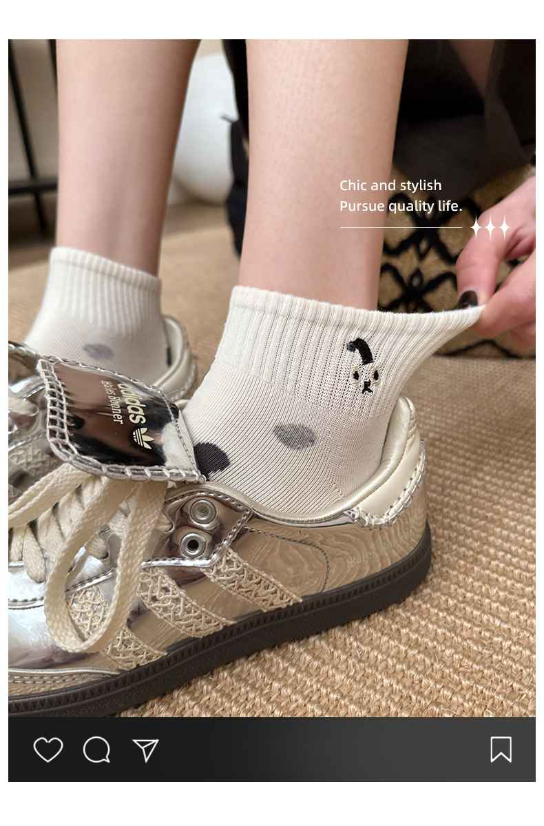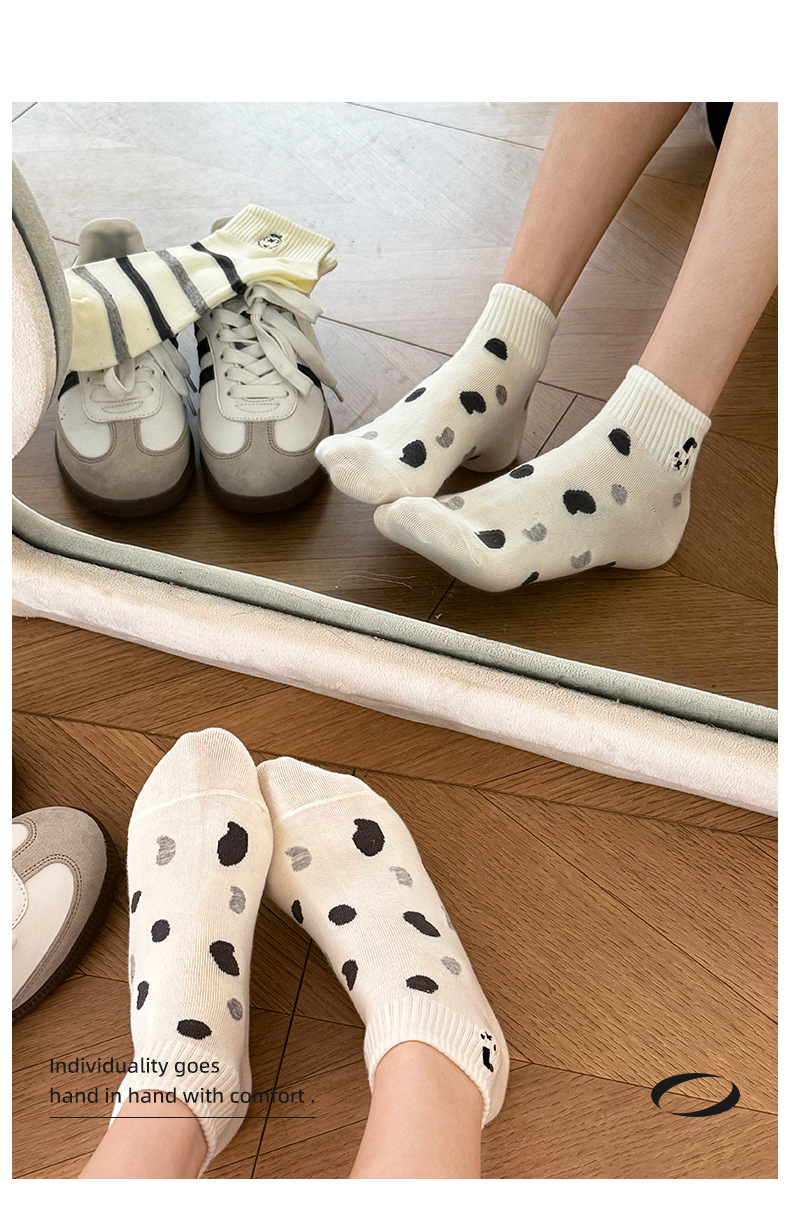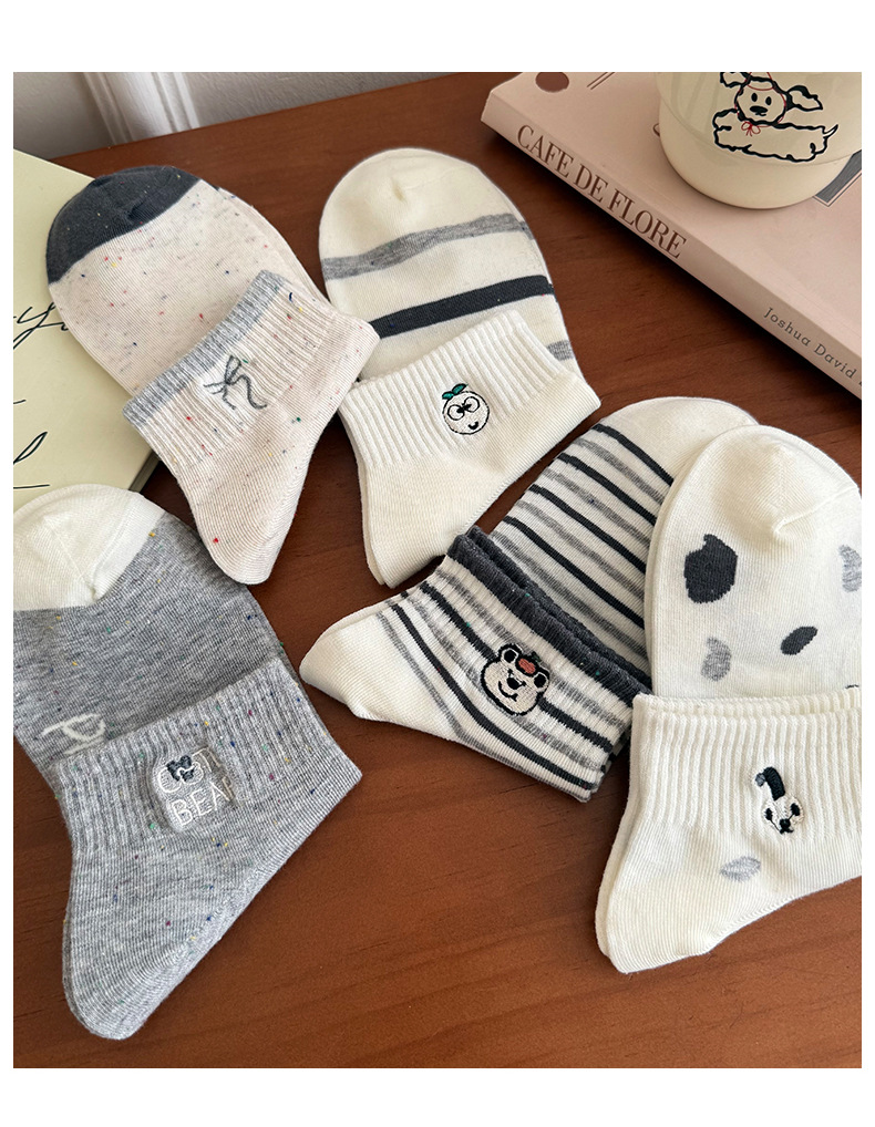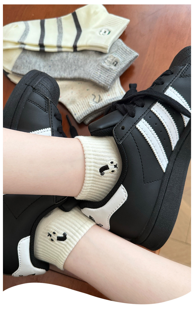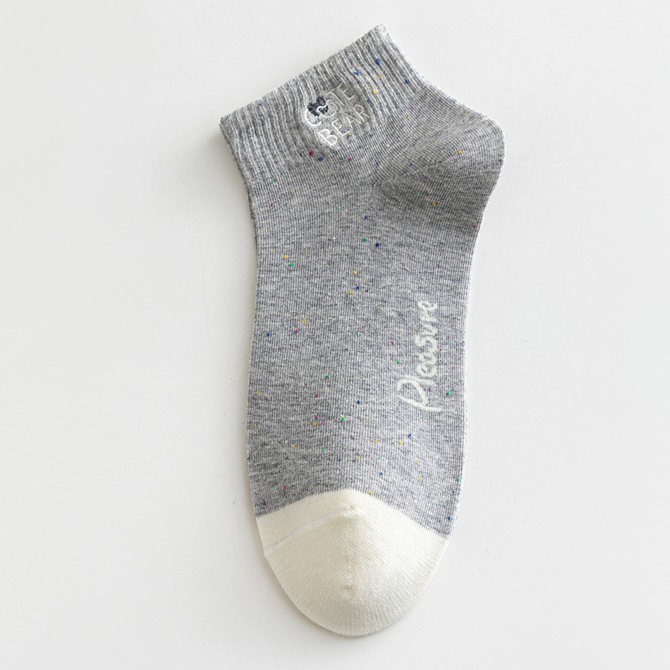 봄과 여름 새로운 일본 만화 자수 양말 강아지 컬 여자 짧은 양말 달콤한 스트라이프 올 매치 코튼 양말