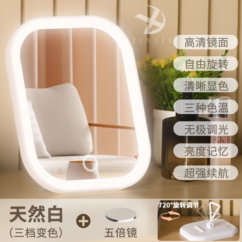 램프 바탕 화면이있는 메이크업 미러 여성용 발광 거울 기숙사 홈 데스크탑 드레싱 실제 충전 라이트