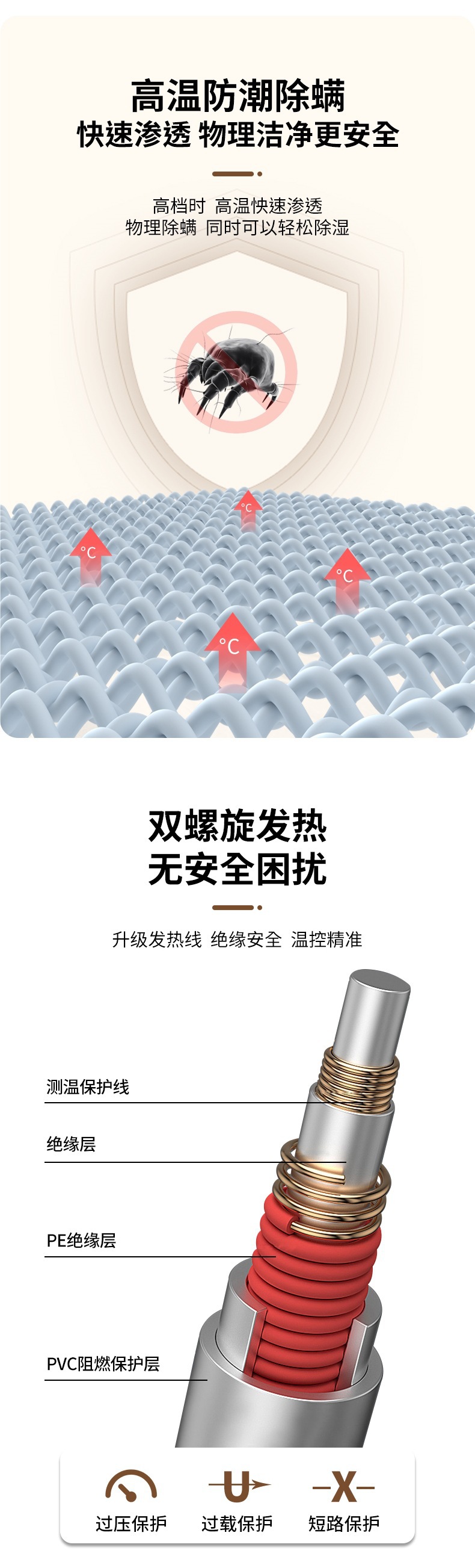 • 벨벳 길이 1.8m + 너비 1.2m 온도 조절을 위한 지능형 타이밍 제어