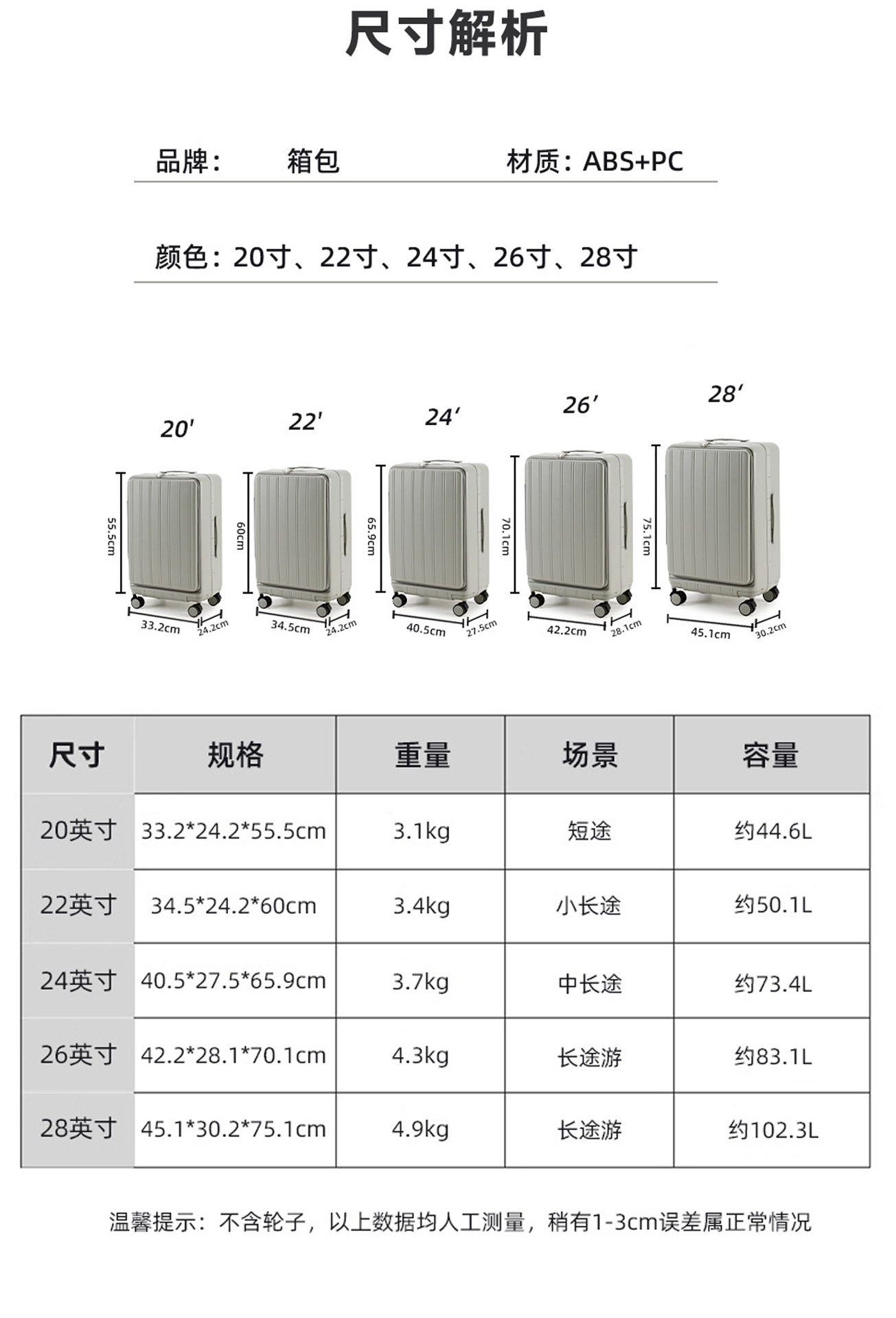 측면 개폐형 깊은 수납공간 다기능 여행가방 20 신형 알루미늄 프레임 트롤리 케이스 대용량 출장용 가방 여행용 26