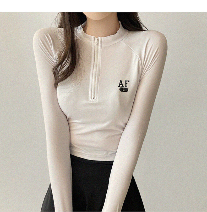 2025 새로운 3 피스 블랙 긴팔 바지 선 스크린 분할 수영복 여성 작은 가슴 보수 학생 벨리 슬리밍스토어 가기