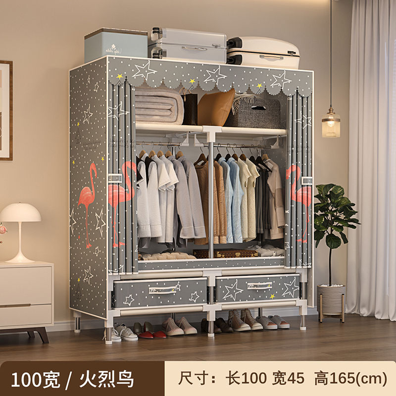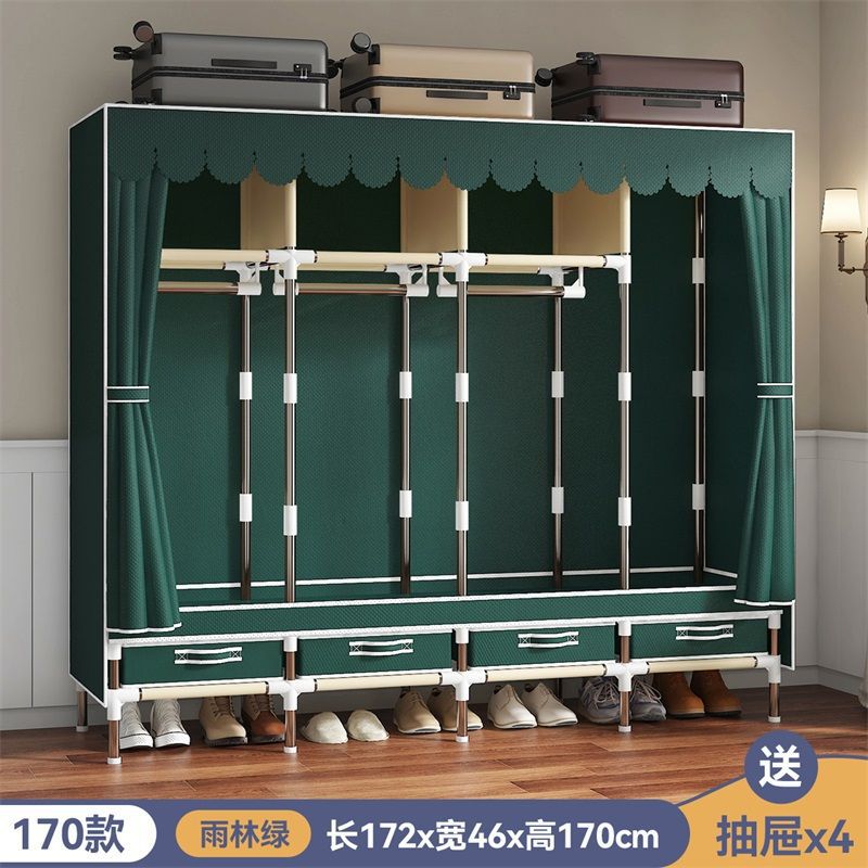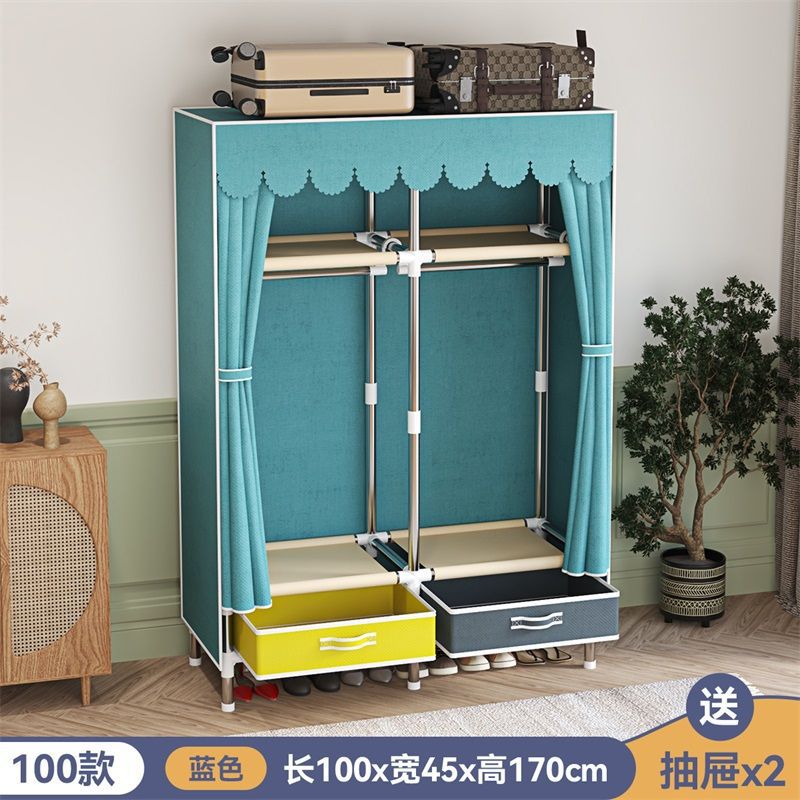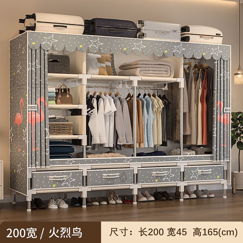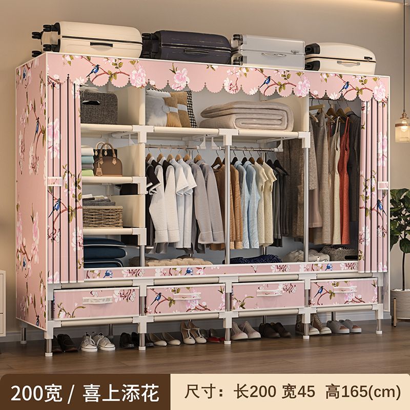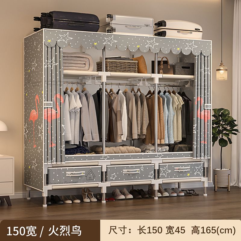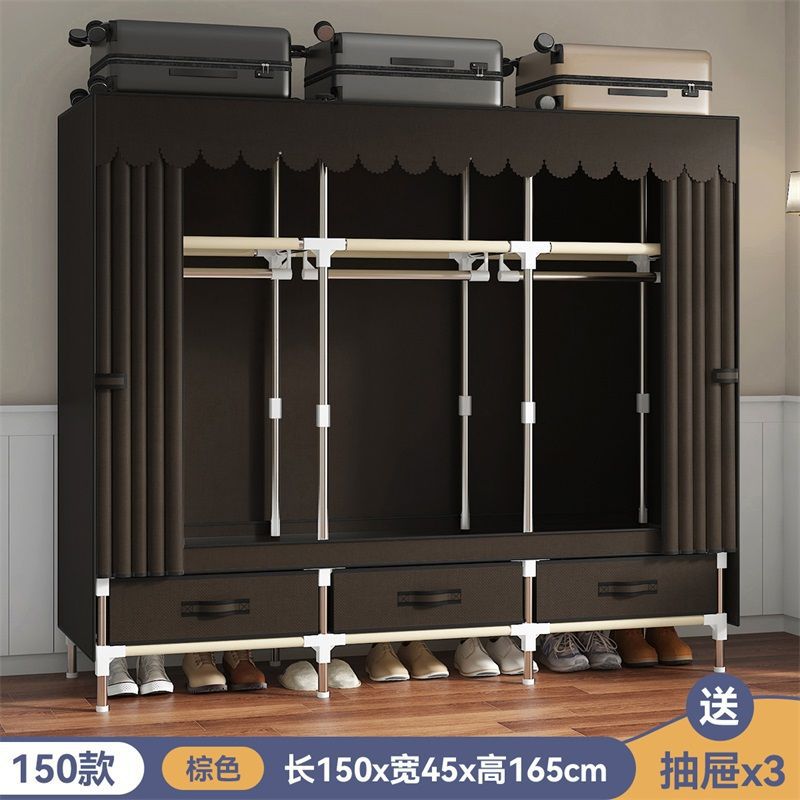 천 옷장 강철 파이프 대담한 조립 간단한 옷장 가정용 침실 보관 옷장 임대 룸