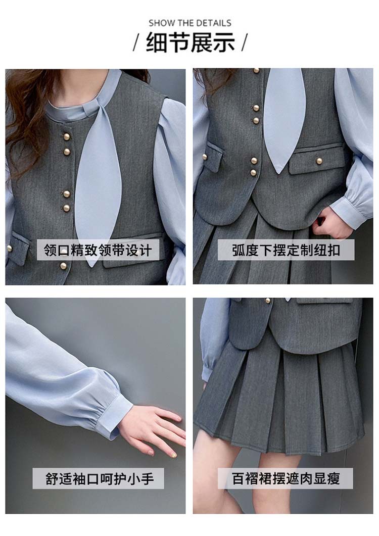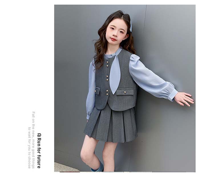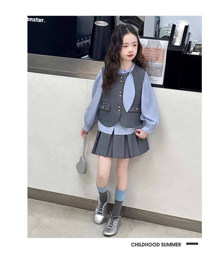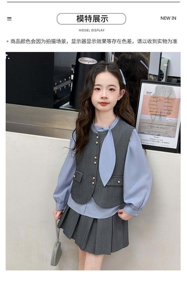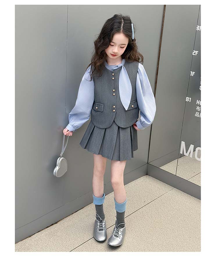 여자 세트 봄 2025 새로운 어린이 셔츠 JK 치마 대학 스타일 3 피스 세트 소녀 주름 치마 3 피스 세트스토어 가기