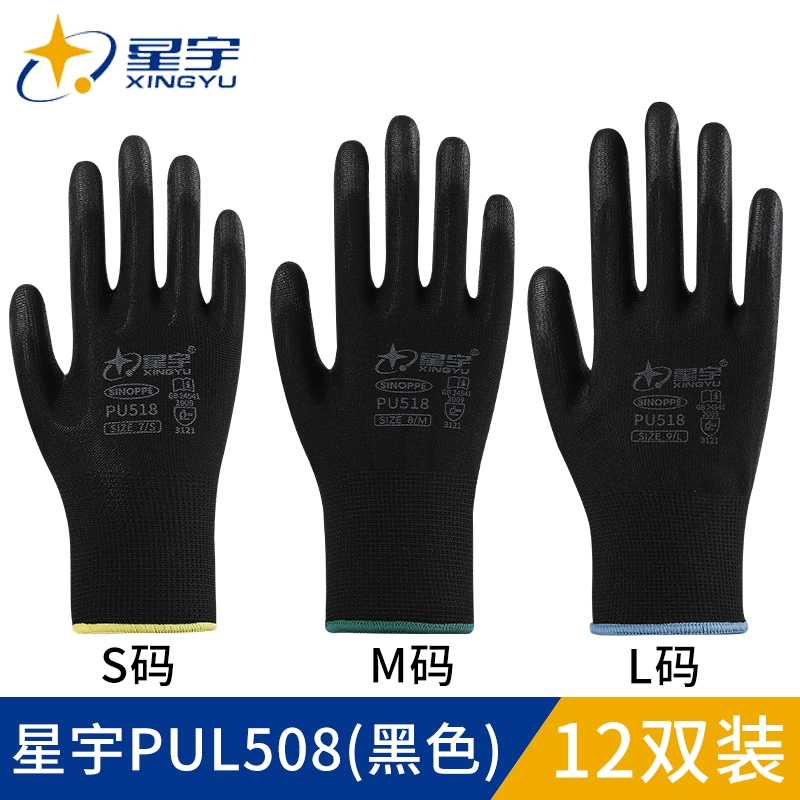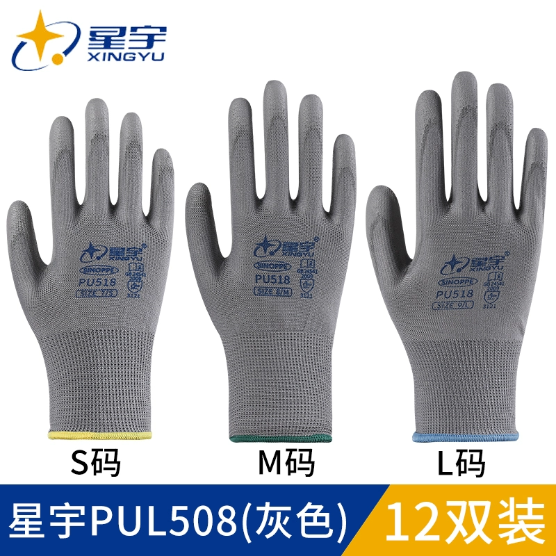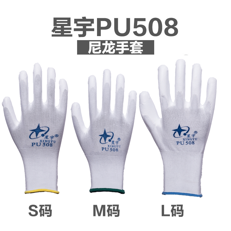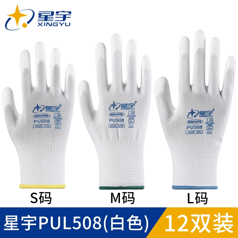 Pu508 같은 장갑 Struggler fu208 접착제 코팅 가죽 팜 코팅 노동 장갑 화이트 나일론 정전기 방지