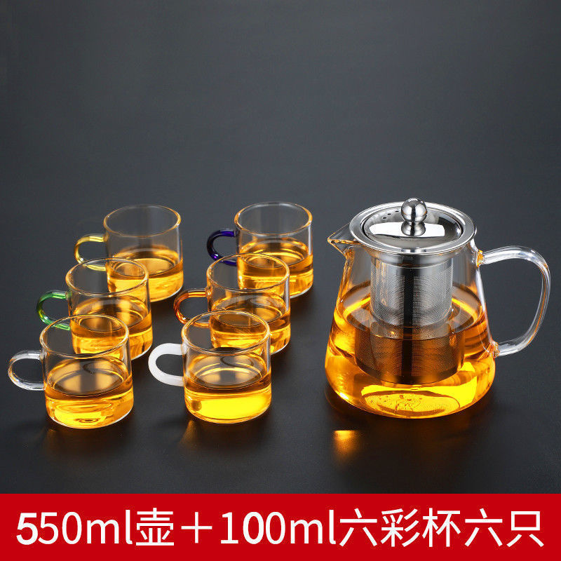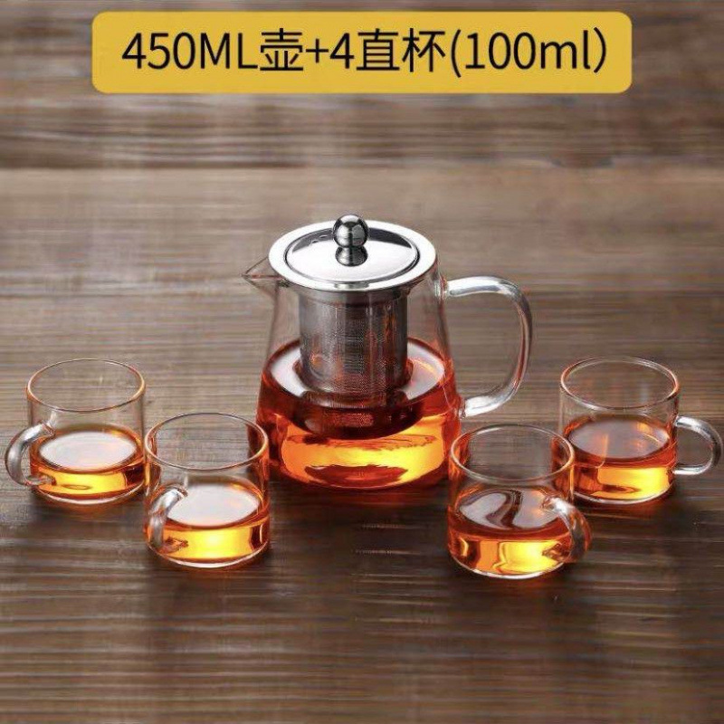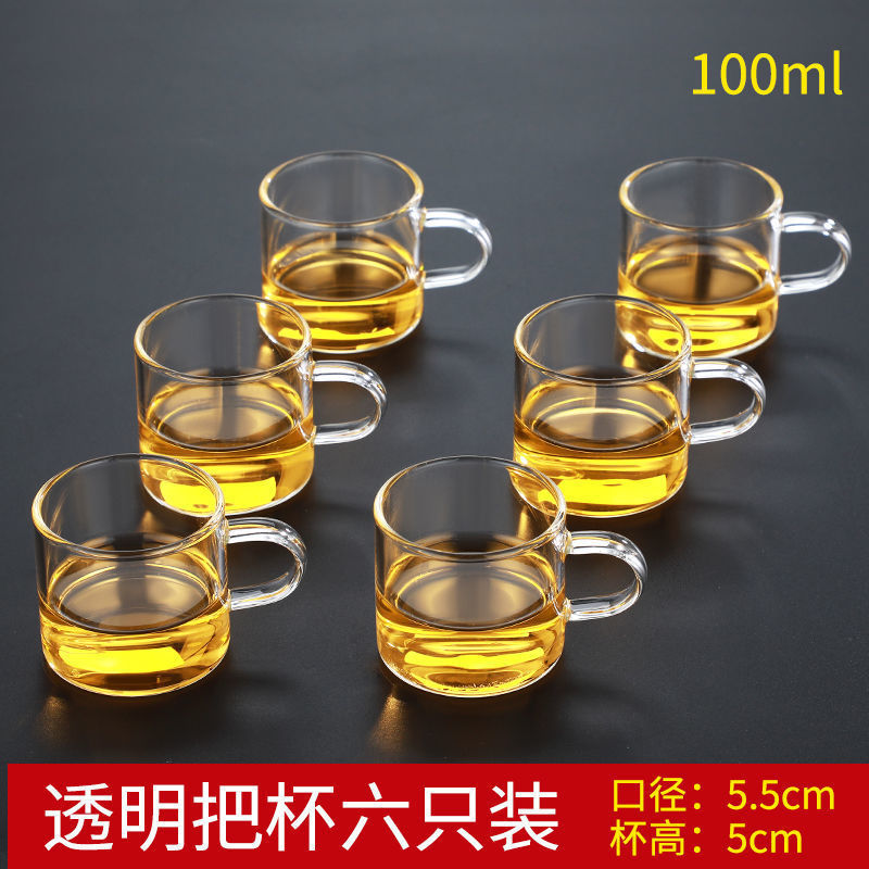 작은 유리 차 컵 쿵푸 차 세트 내열성 두꺼운 가정용 투명한 음주 컵 세트 차만
