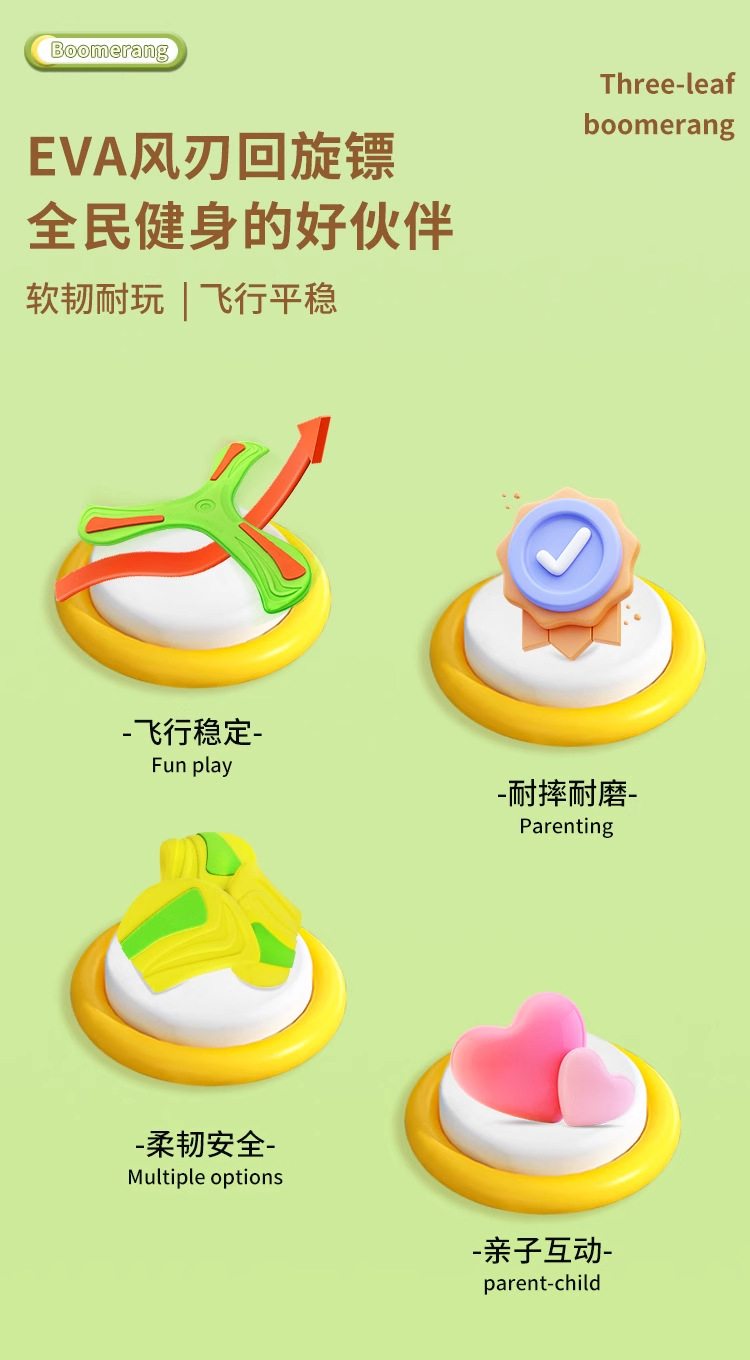 국경 간 EVA 어린이 손 던지기 세 잎 부메랑 스키 부드러운 고무 프리스비 부모-자식 대화 형 게임 야외 장난감스토어 가기