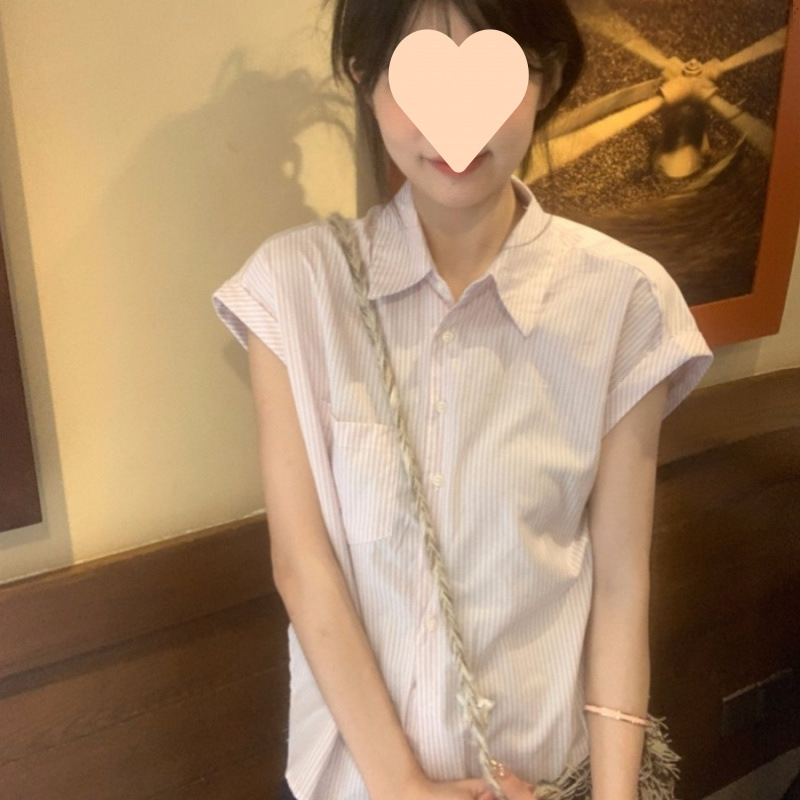 여름 새로운 대학 스타일 작은 신선한 디자인 감각 민소매 줄무늬 셔츠 느슨한 세련된 작은 비행 소매 셔츠스토어 가기