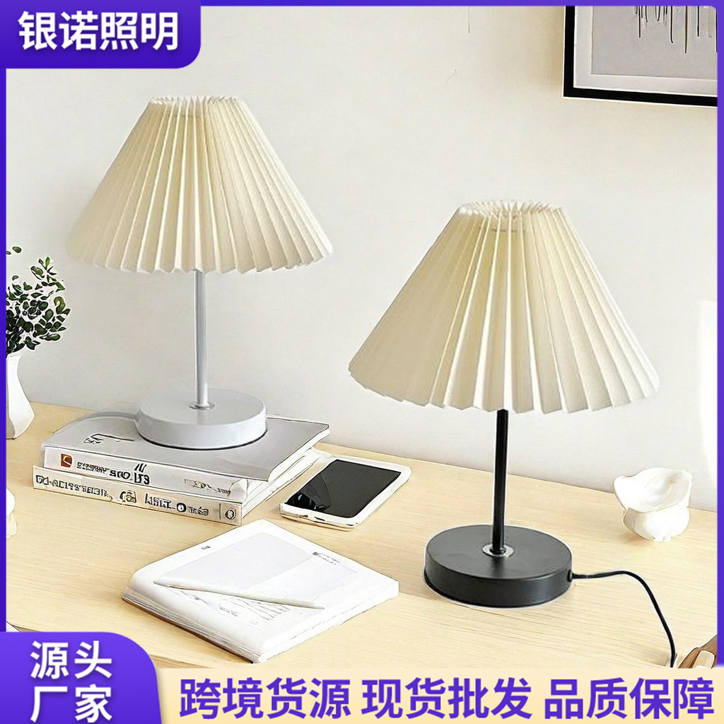 국경 직물 테이블 램프 주름 침실 침실 램프 미국 금속 북유럽 빈티지 분위기 장식 야간 조명스토어 가기