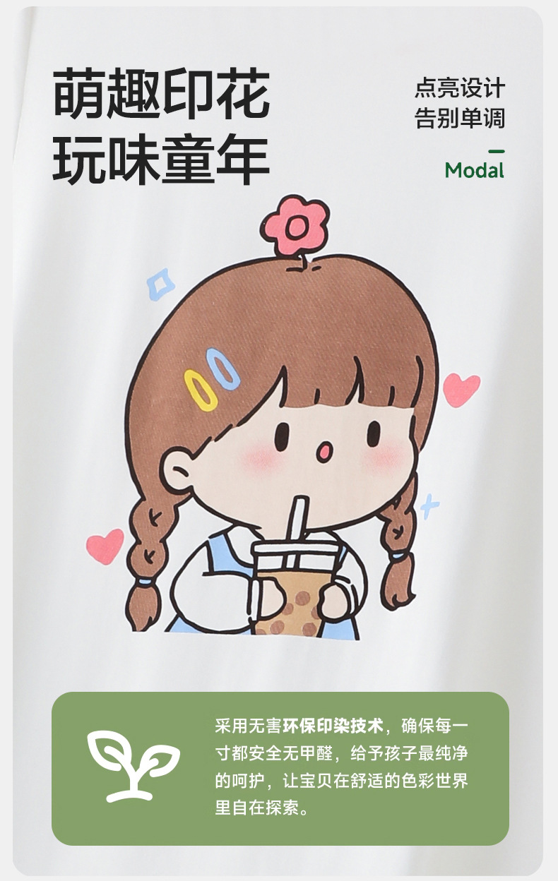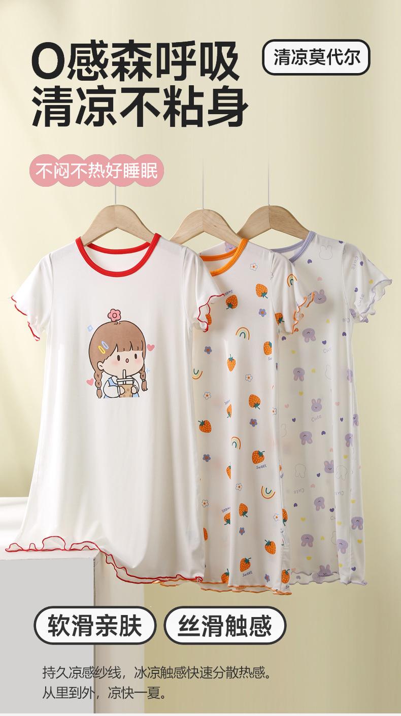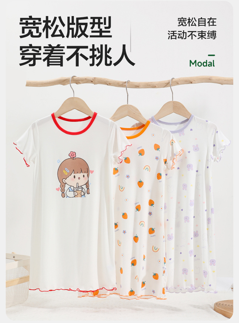 2025 새로운 소녀 잠옷 여름 어린이 모달 만화 잠옷 A 아기 캐주얼 홈 옷스토어 가기