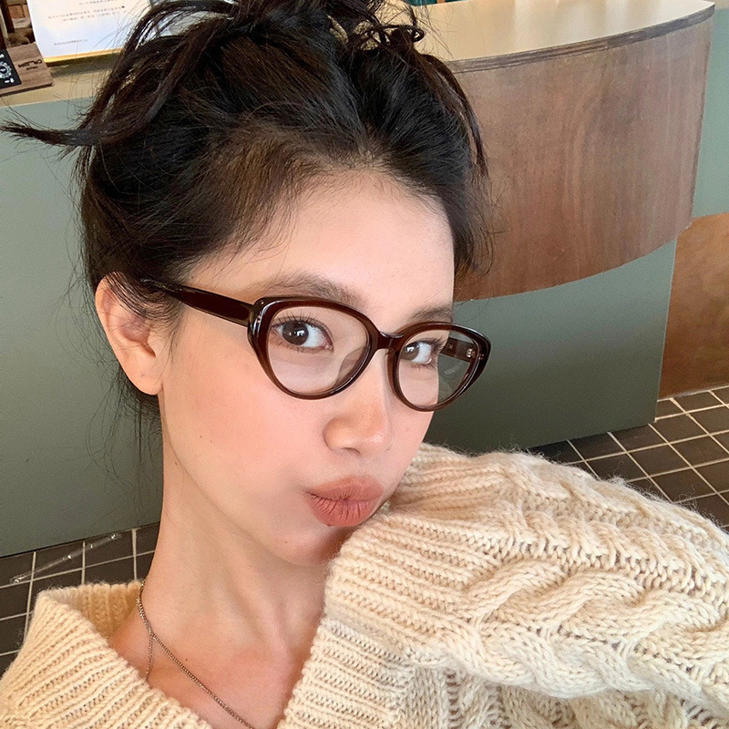 오렌지 고양이의 눈 프레임 여성의 근시 장식은 빈티지 Maillard 스타일의 일반 다크 브라운 눈 안티 블루 라이트의 정도를 장착 할 수 있습니다.스토어 가기