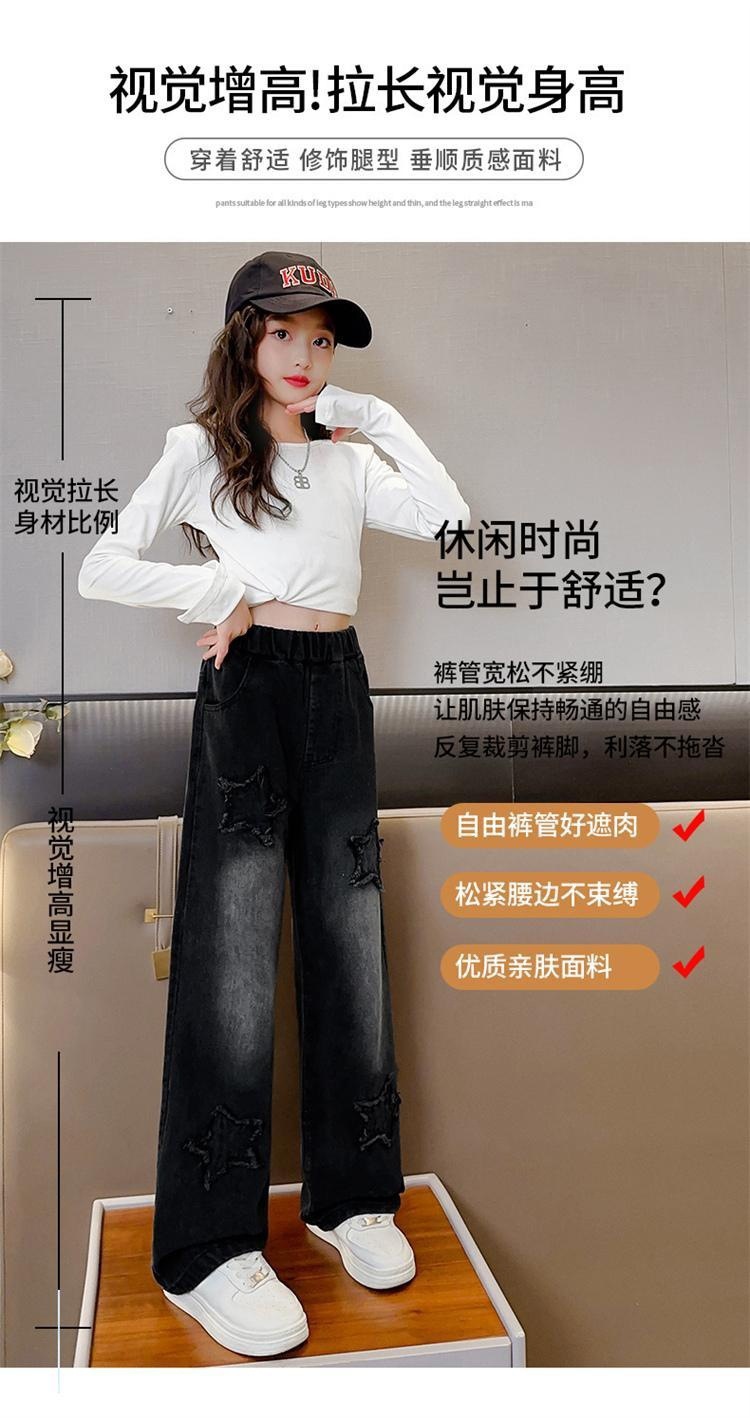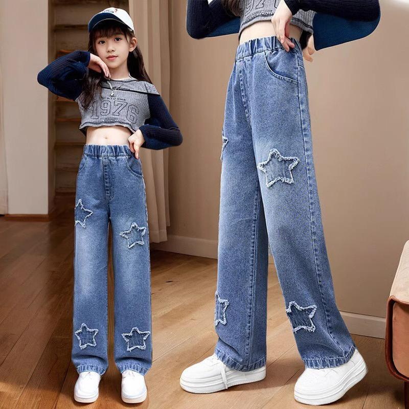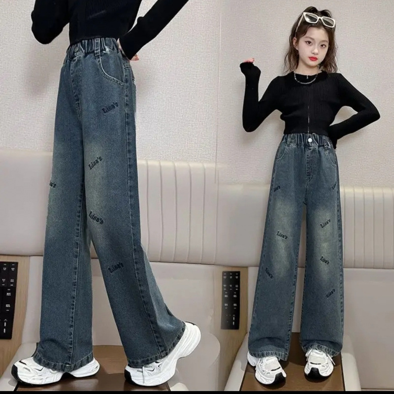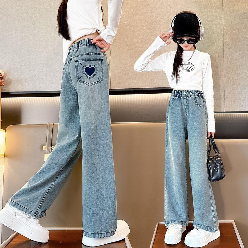 소녀 청바지 봄과 가을 새로운 서양식 중대형 어린이 넓은 다리 바지 패션 트렌드 캐주얼 스트레이트 바지스토어 가기