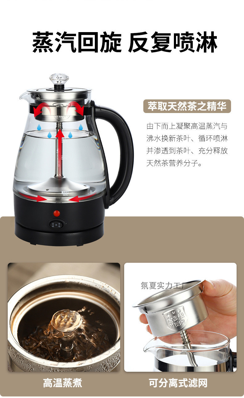 홍차 보일러 자동 증기 끓는 주전자 유리 절연 가정용 차 기선 다기능 가정용 건강 냄비스토어 가기
