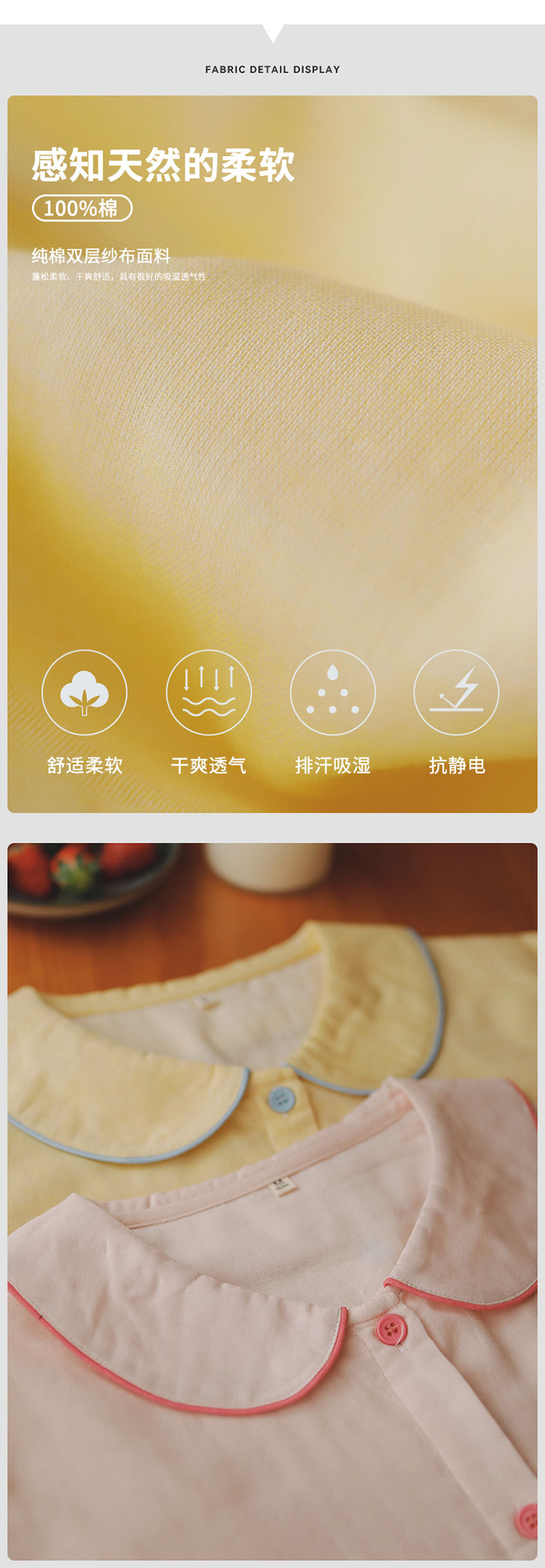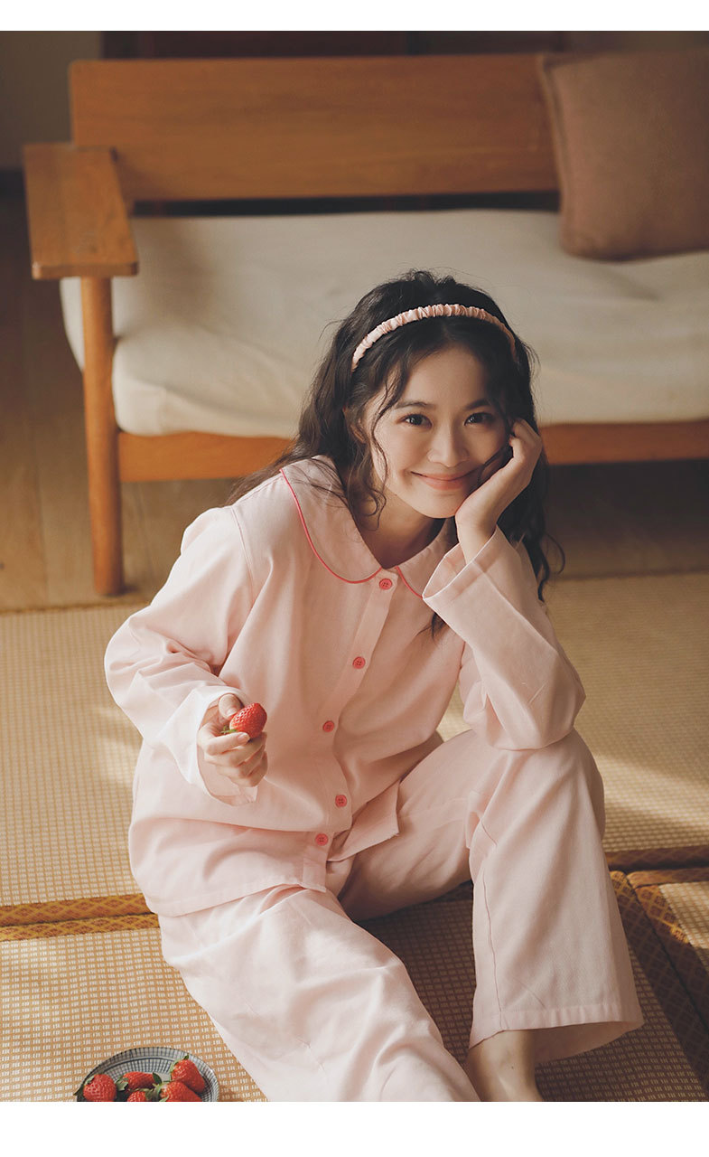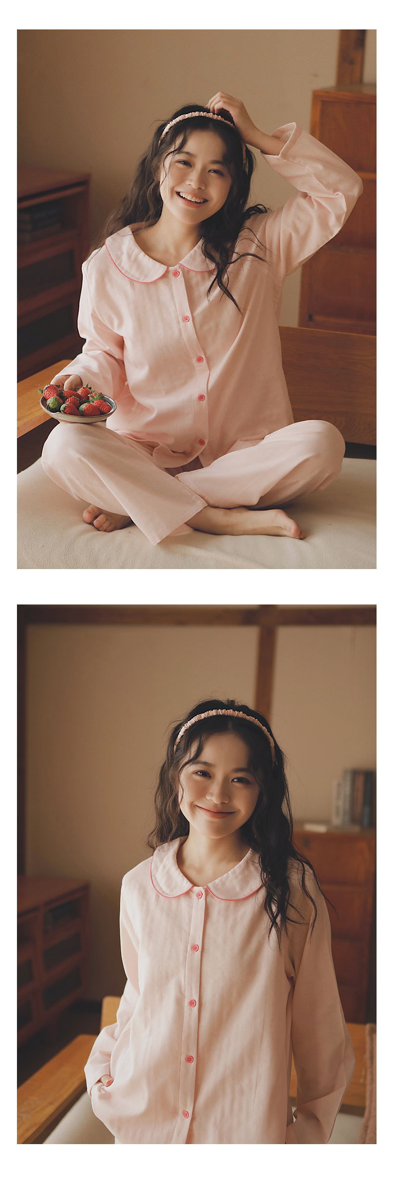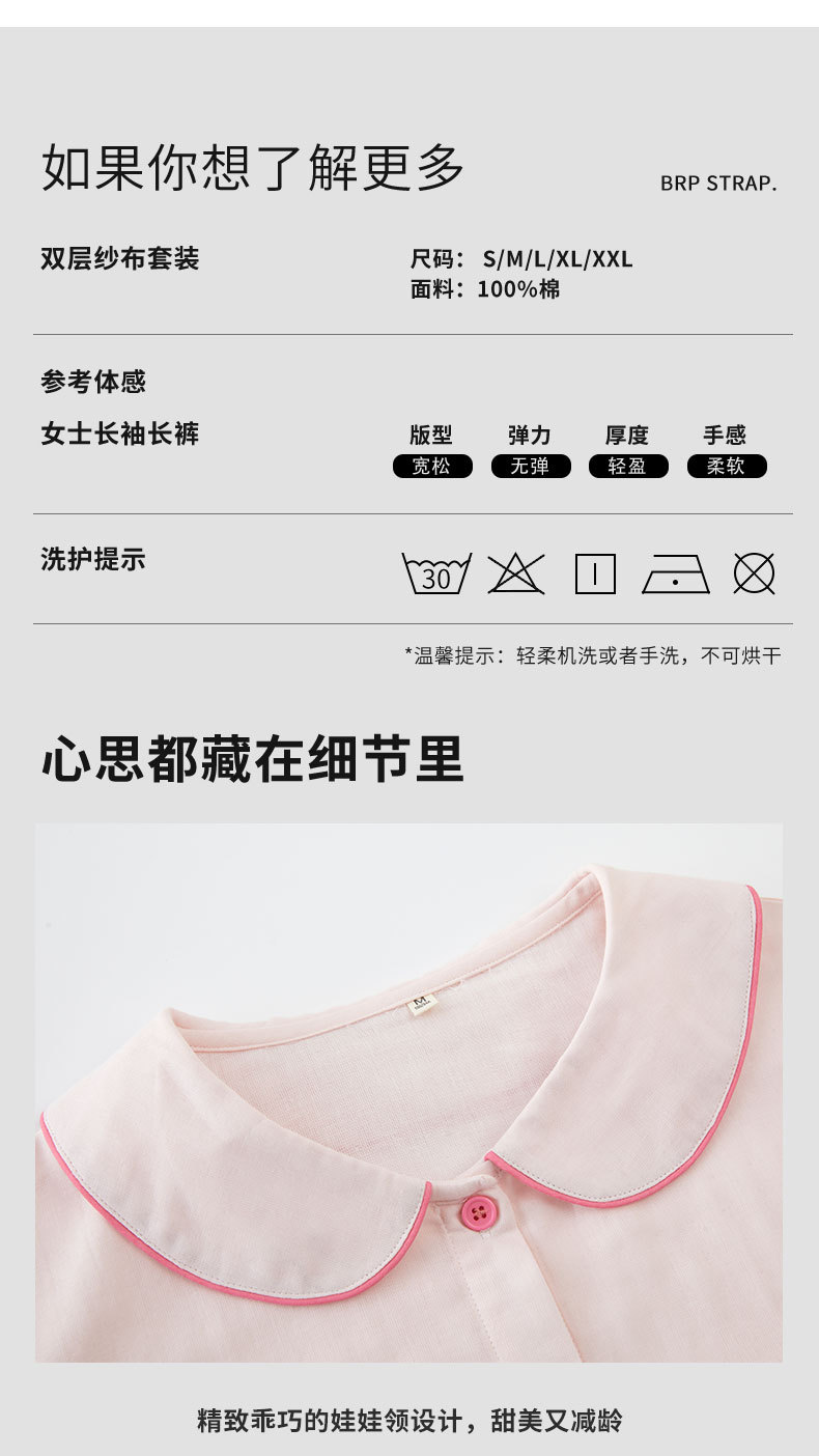 영광 69-일본 달콤한 잠옷 소녀의 봄과 가을 인형 칼라 순면 거즈 홈 옷 세트 순면스토어 가기