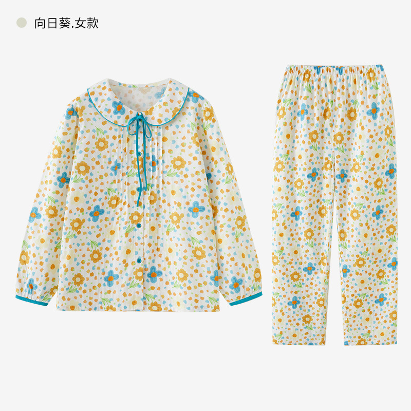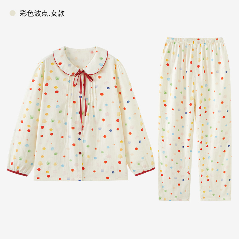 영광 69-일본 달콤한 잠옷 소녀의 봄과 가을 인형 칼라 순면 거즈 홈 옷 세트 순면