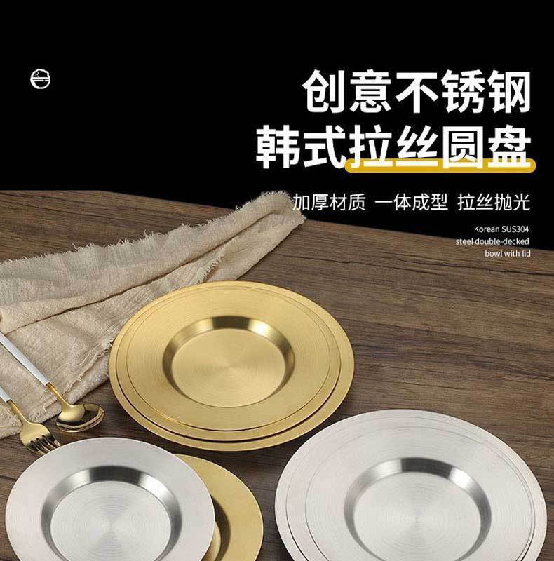 한국식 스테인레스 스틸 디스크 바베큐 스낵 플레이트 차가운 접시 냄비 요리 바베큐 접시 깊은 접시 얕은 접시 디너 플레이트
