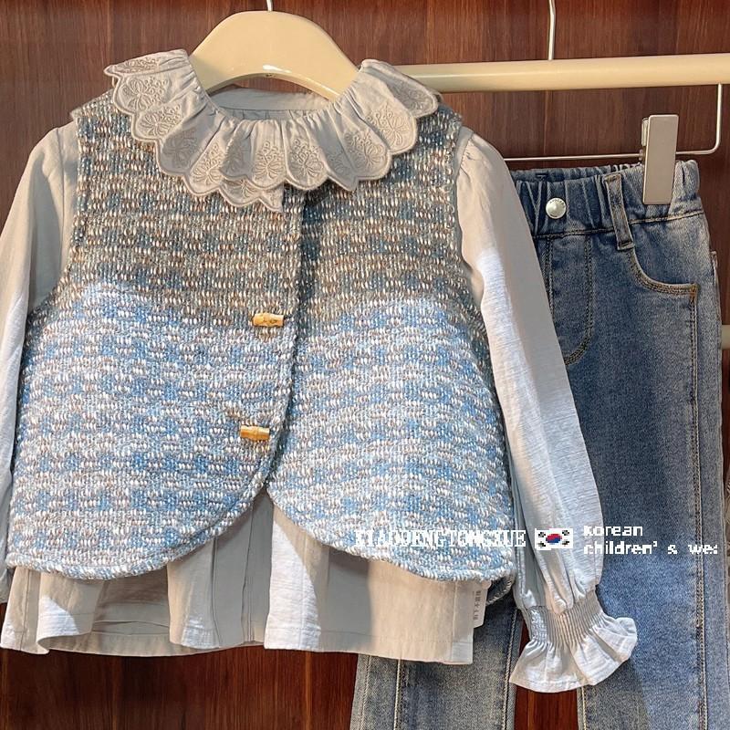 소녀의 봄 가을 원피스 2025 세트 폭발 한국 아기 소녀의 작은 향기로운 조끼 청바지 소녀의 서양식 3 피스 세트