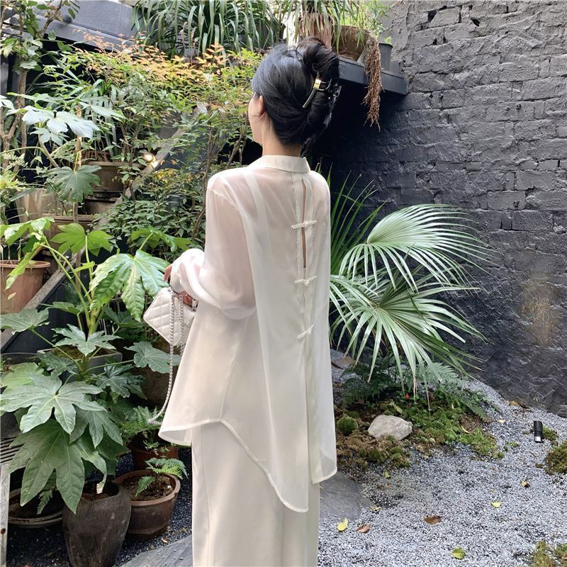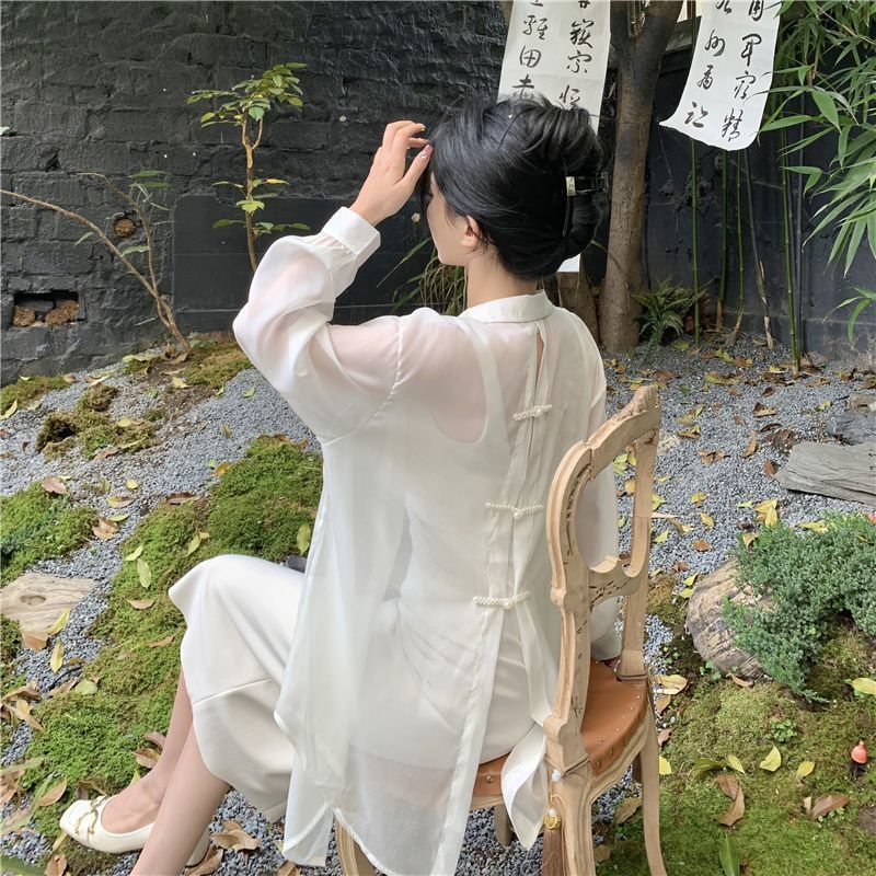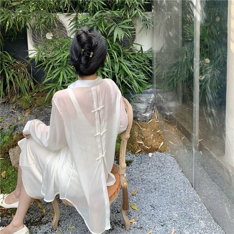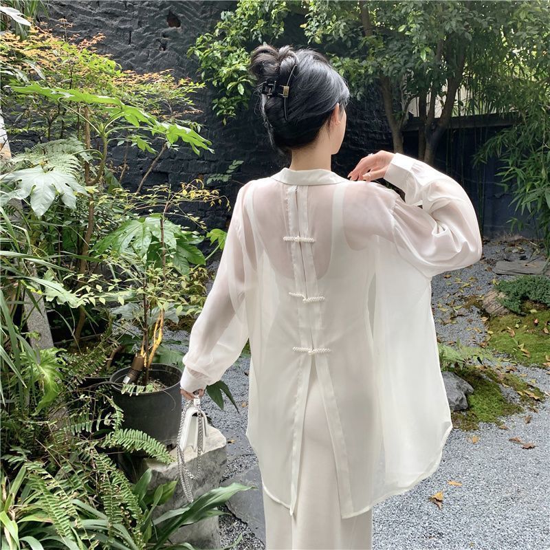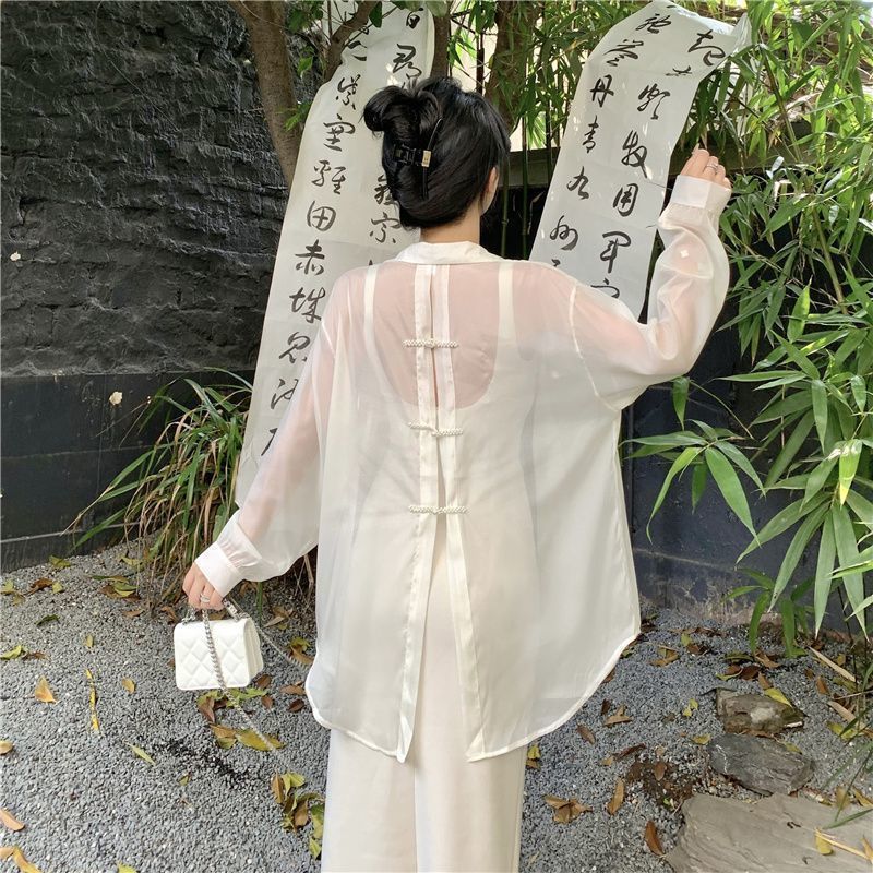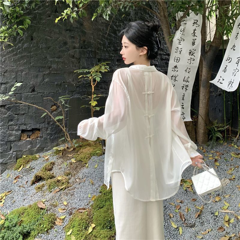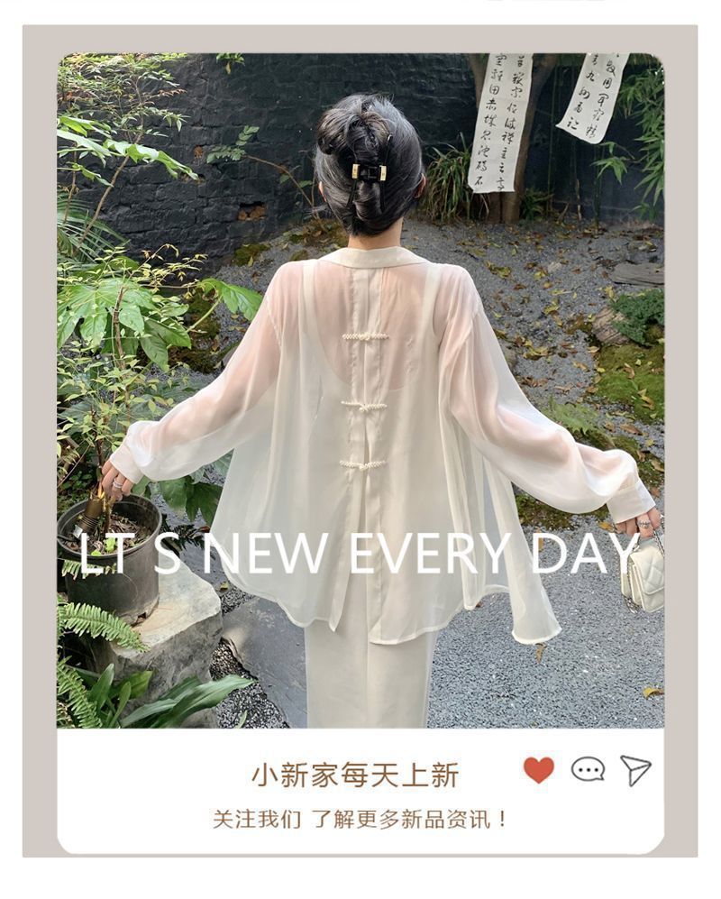 새로운 중국 스타일 국가 스타일 선스크린 셔츠 재킷 여성 여름 얇은 긴 소매 카디건 2024 새로운 외부 쉬폰 탑