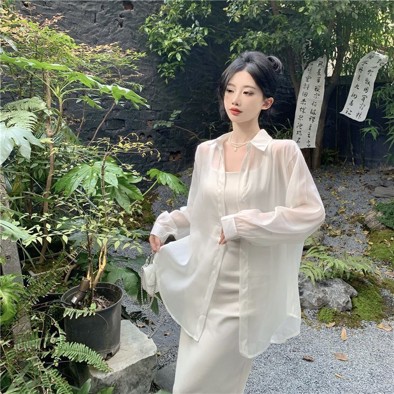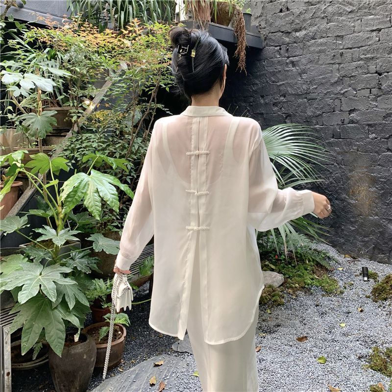 새로운 중국 스타일 국가 스타일 선스크린 셔츠 재킷 여성 여름 얇은 긴 소매 카디건 2024 새로운 외부 쉬폰 탑스토어 가기