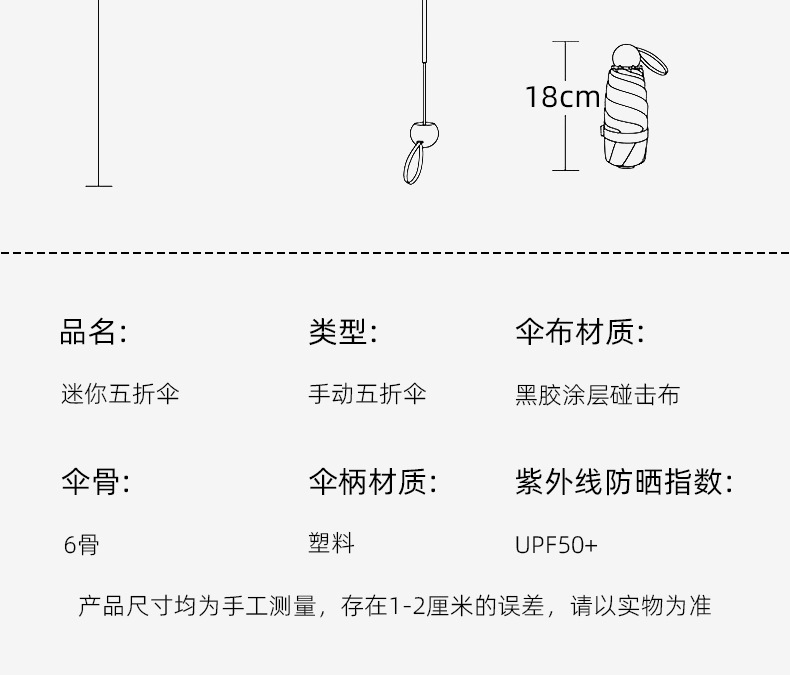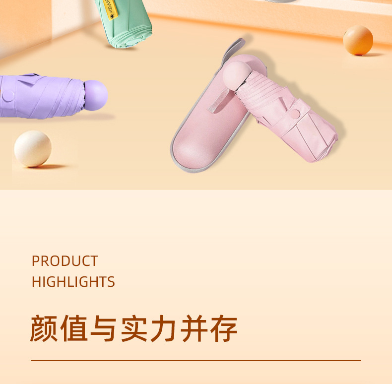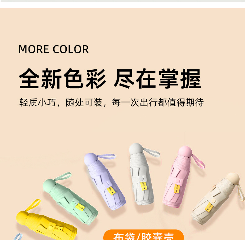 5 개의 접힌 우산 햇빛 햇빛 우산 이중 사용 휴대용 작은 우산 접히는 높은 수준의 햇빛 우산 캡슐 포켓스토어 가기
