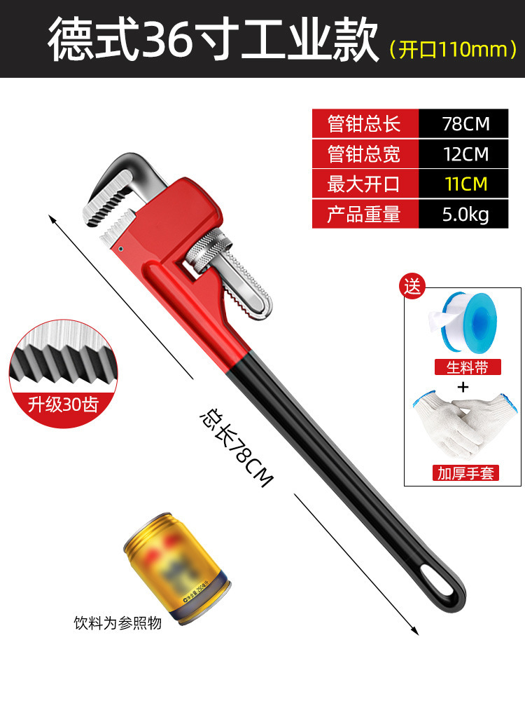 • 독일식 36inch 산업용 [초대형 개구부 110mm/미끄러짐 없는 추가 톱니]