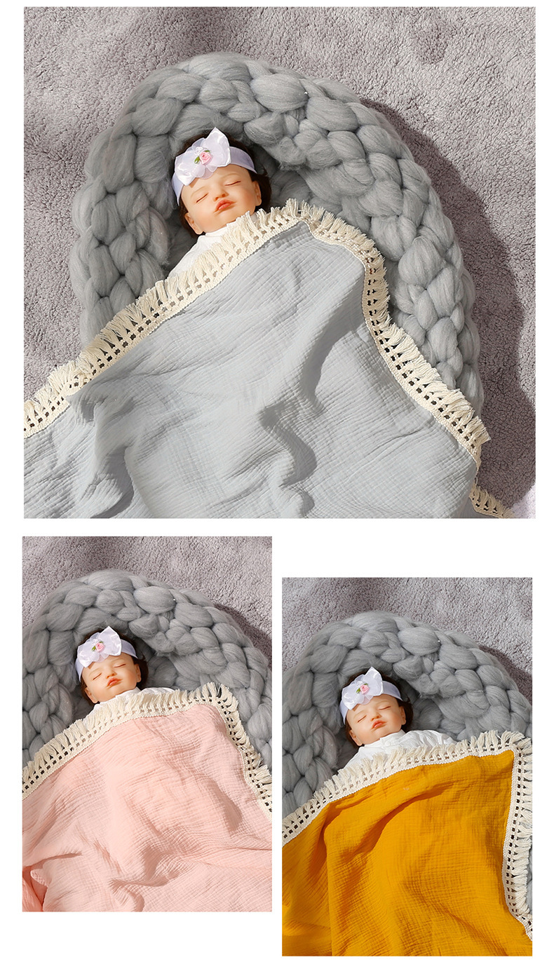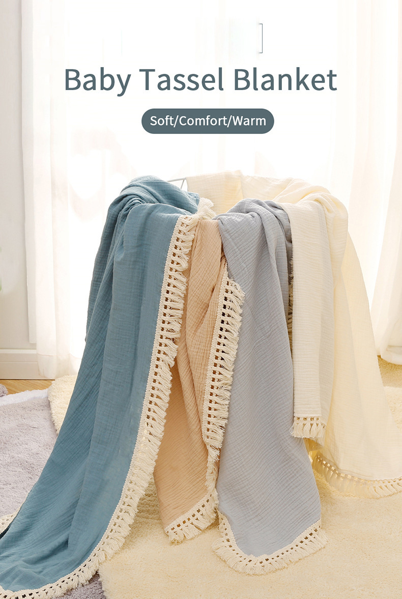 어린이 거즈 포장 타월 신생아 목욕 타월 유아 담요 포대기 태슬 담요 통기성