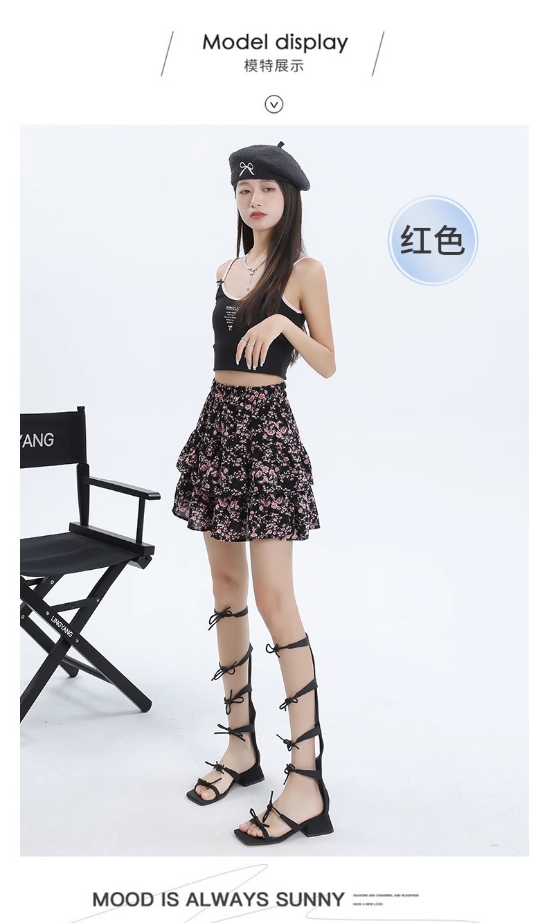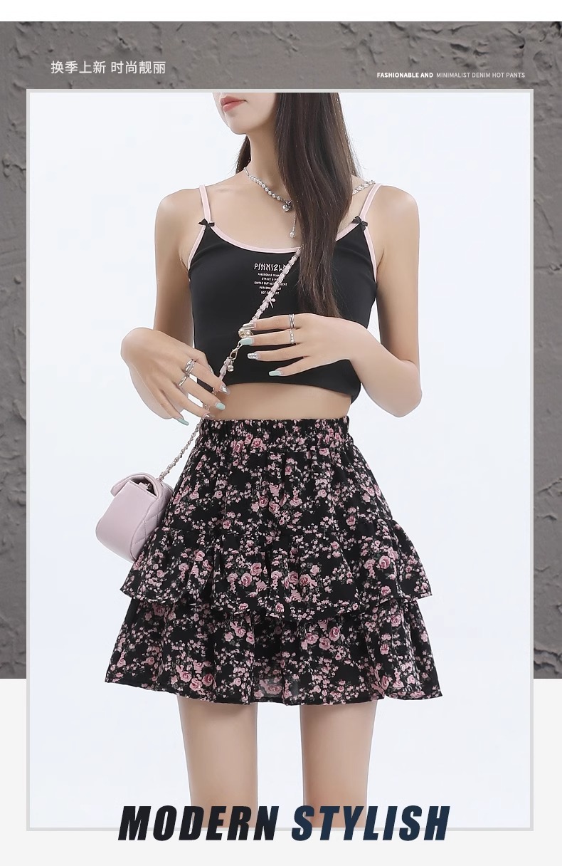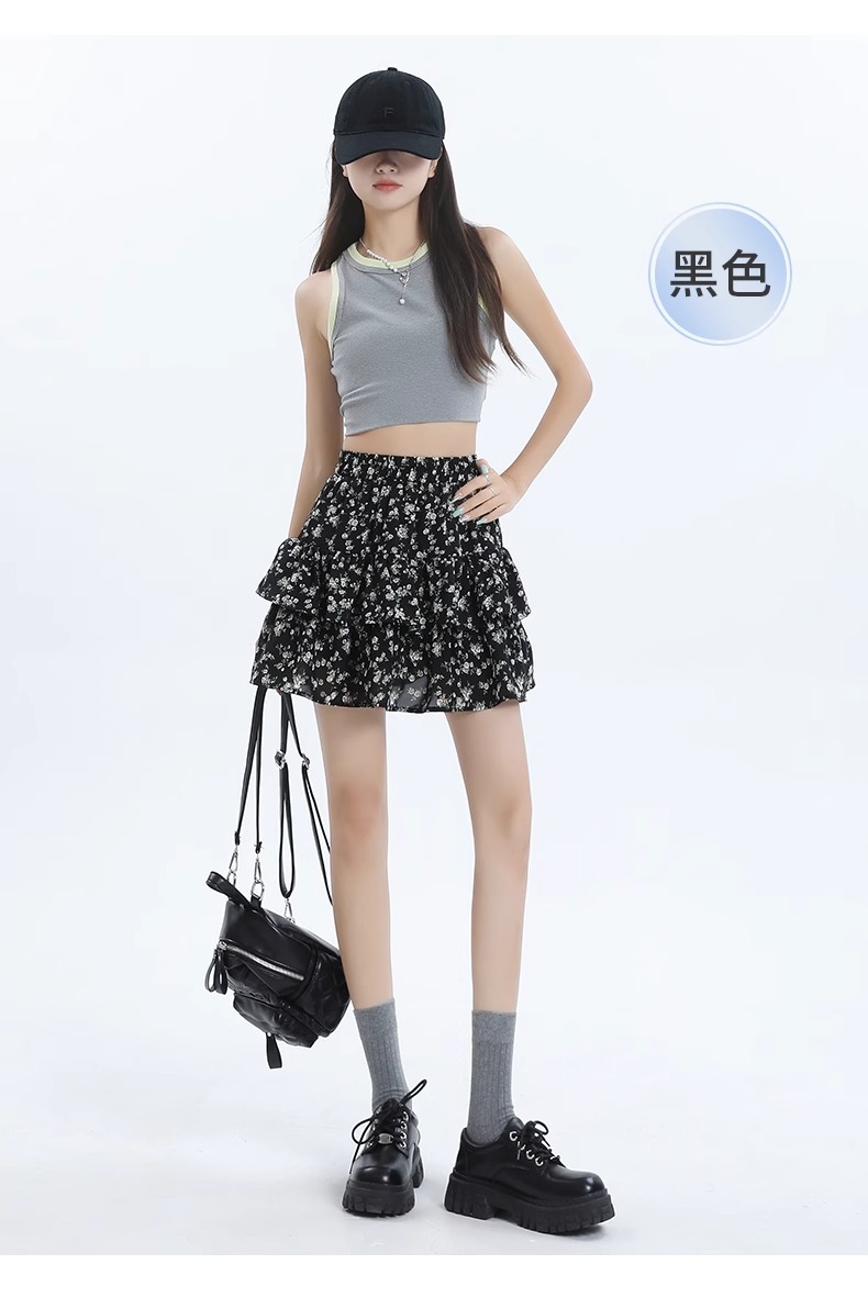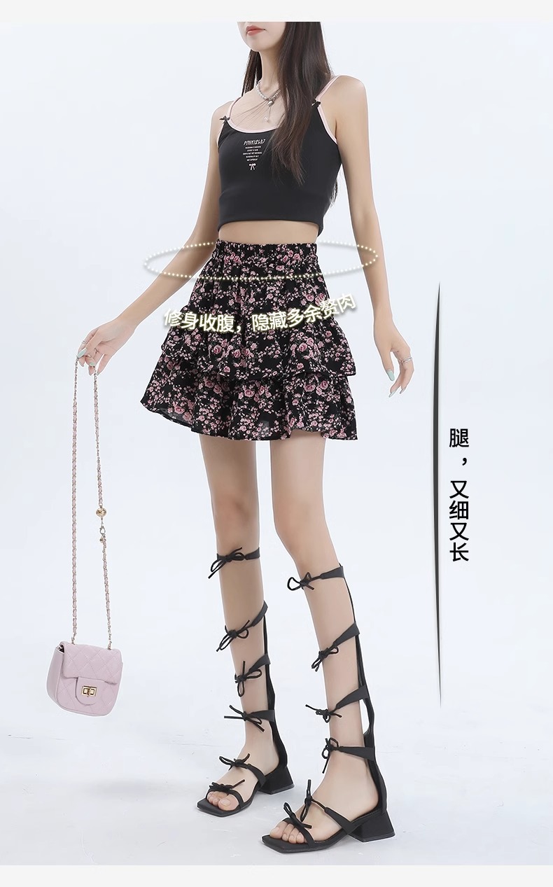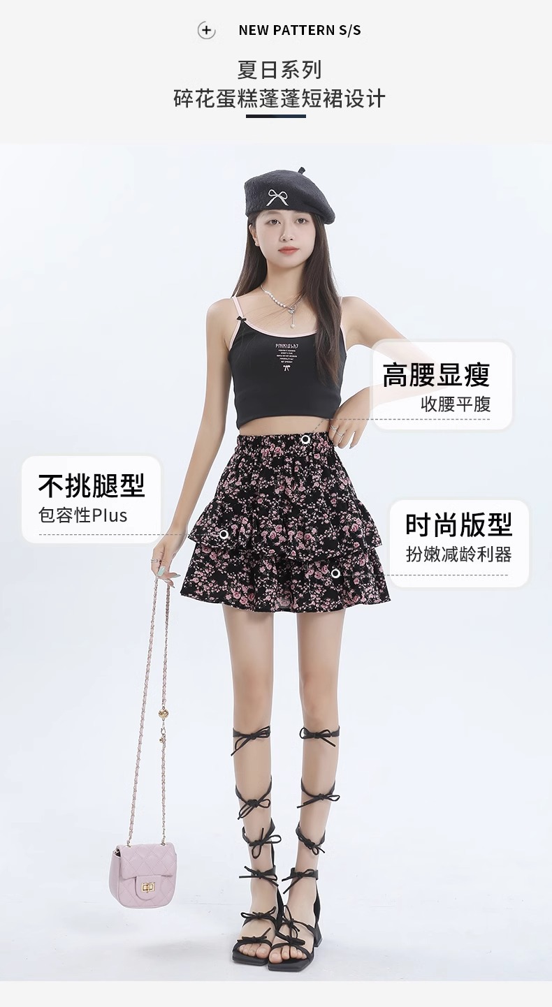 꽃 짧은 치마 케이크 치마 여자 여름 2025 새로운 높은 허리 A 라인 뜨거운 소녀 달콤한 엉덩이 하프 스커트스토어 가기