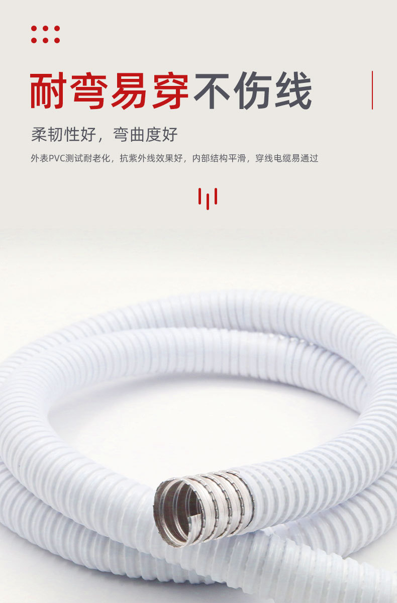흰색 플라스틱 코팅 금속 호스, 전기 케이블, 네트워크 케이블, 골판지 파이프, 난연성, 소방, 나사 뱀 가죽 파이프, 보호 파이프