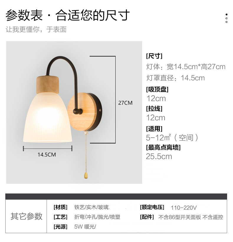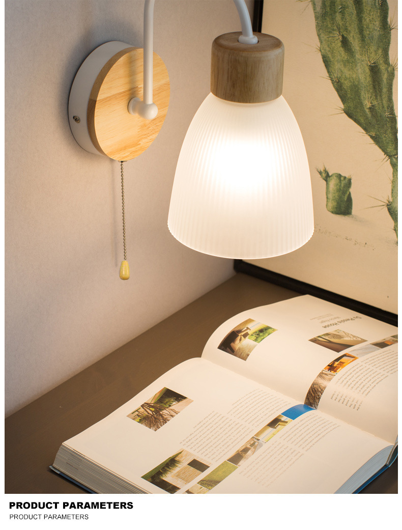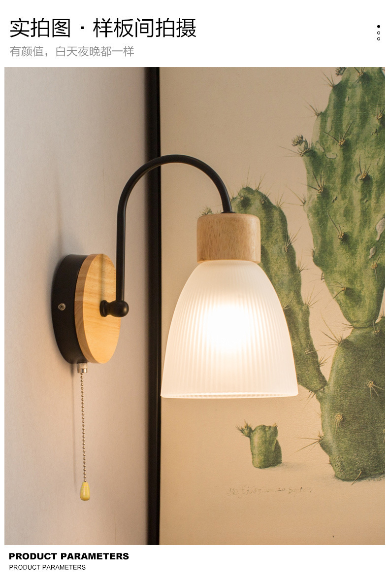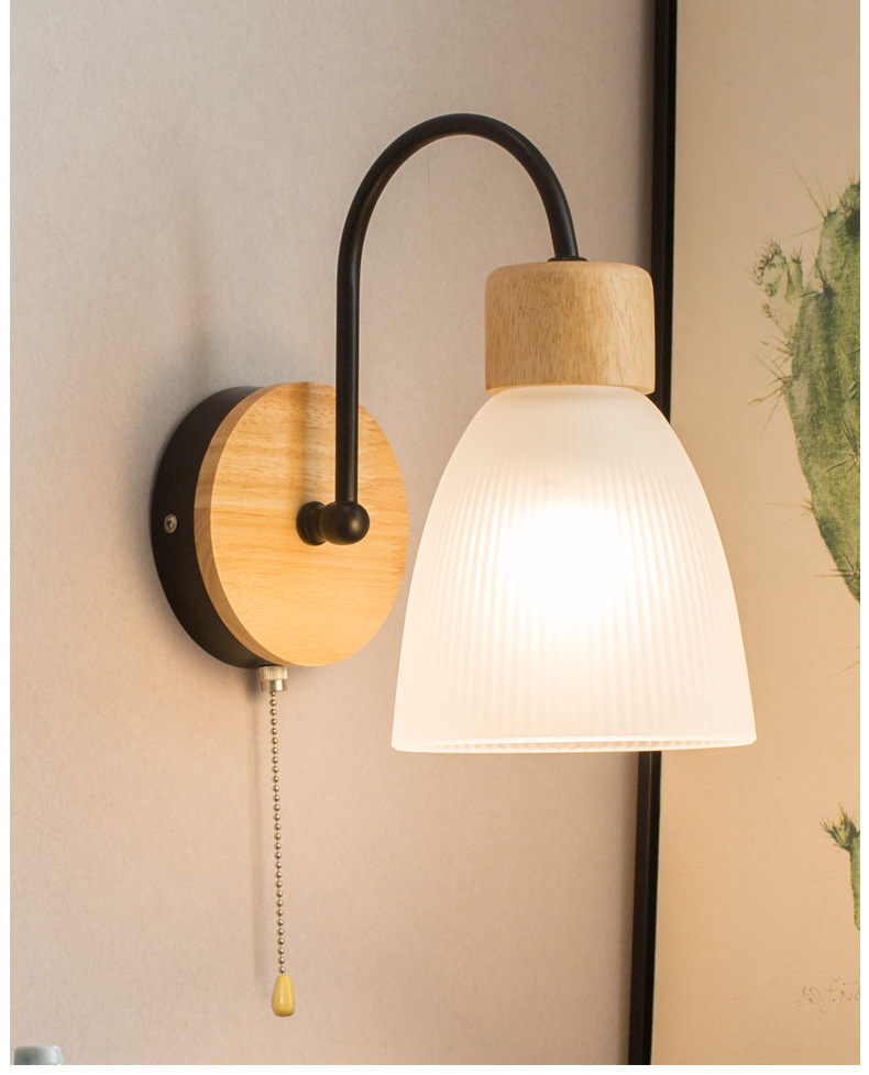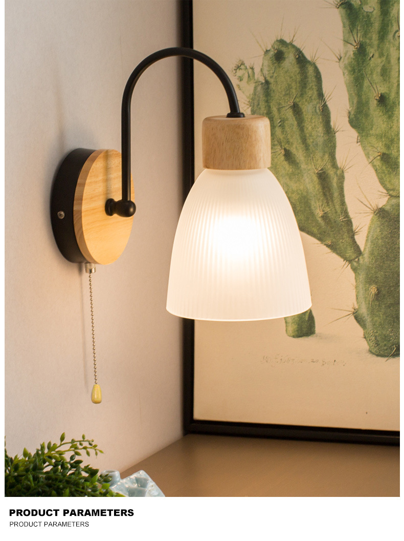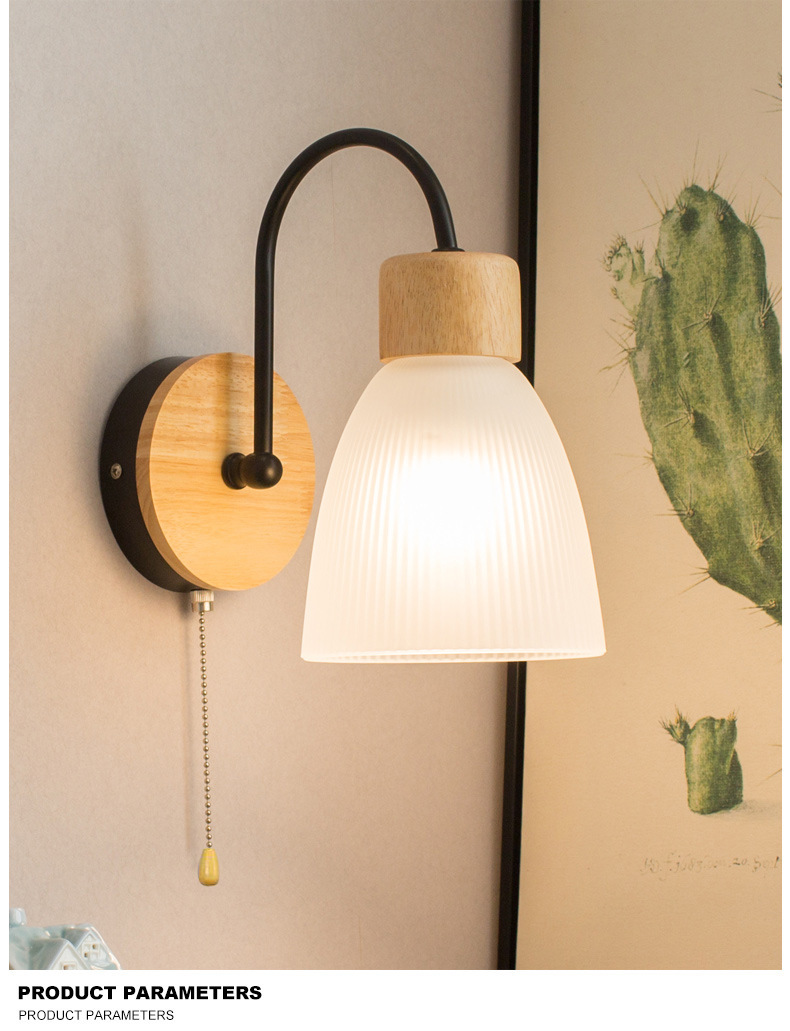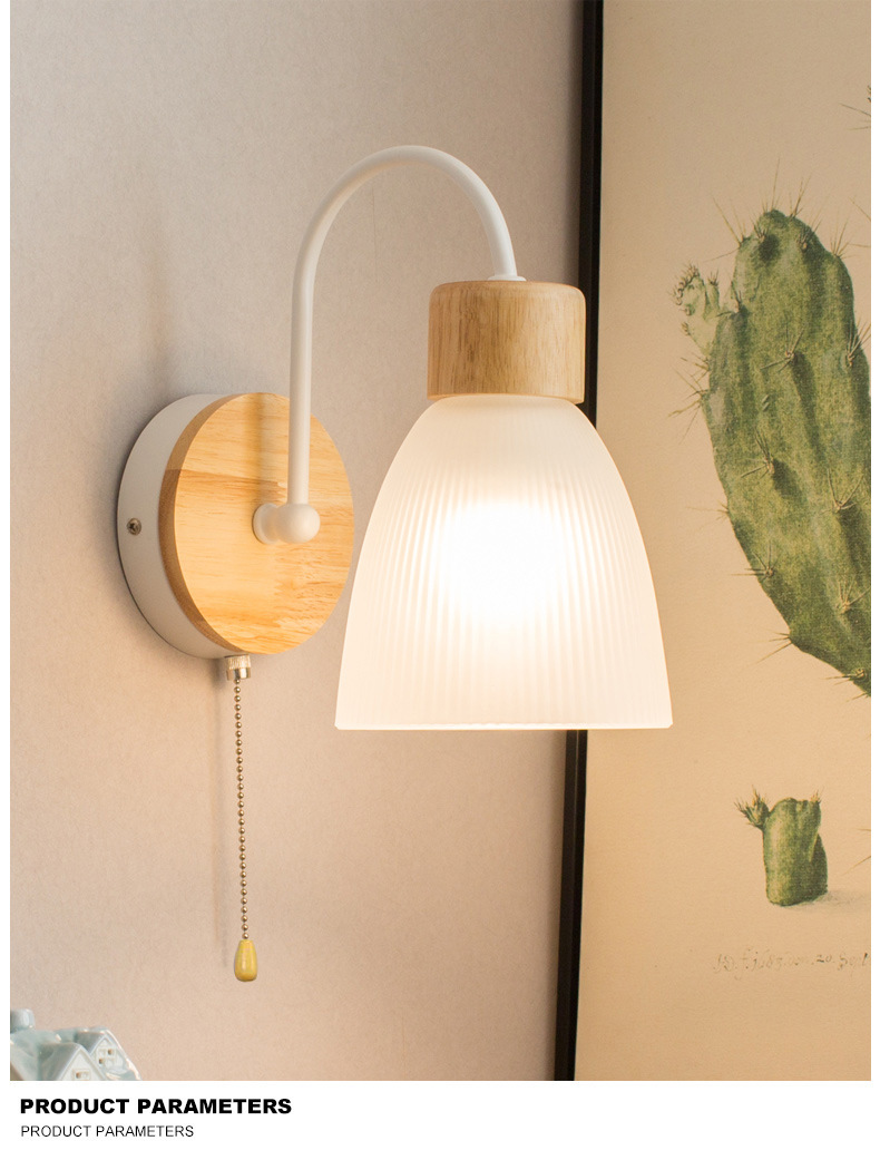 간단한 현대 LED 로그 유리 벽 램프 침실 침실 풀 와이어 스위치 벽 램프 복도 발코니 입구 램프